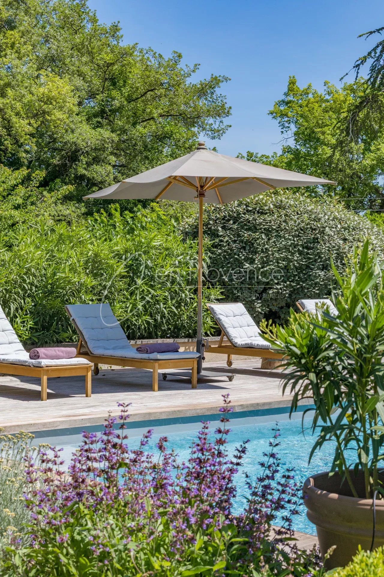 À l’extérieur, un jardin méditerranéen entoure une magnifique piscine privée de 11x5 m, idéale pour se ressourcer dans un cadre enchanteur.