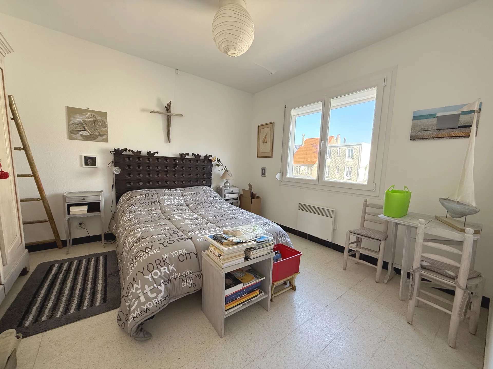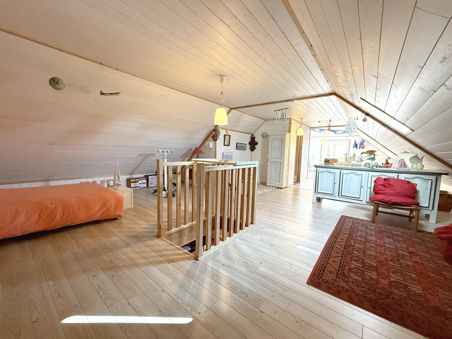 Appartement en duplex à 250 mètres des plages, à proximité des commerces ... Un premier niveau avec entrée, séjour coin cuisine avec balcon plein sud, 2 chambres, salle d'eau et toilettes séparés ... au second niveau, un vaste espace de 50 m² (92 m² au sol) avec une salle d'eau et toilettes ... Dans une résidence entretenue avec parking commun ...