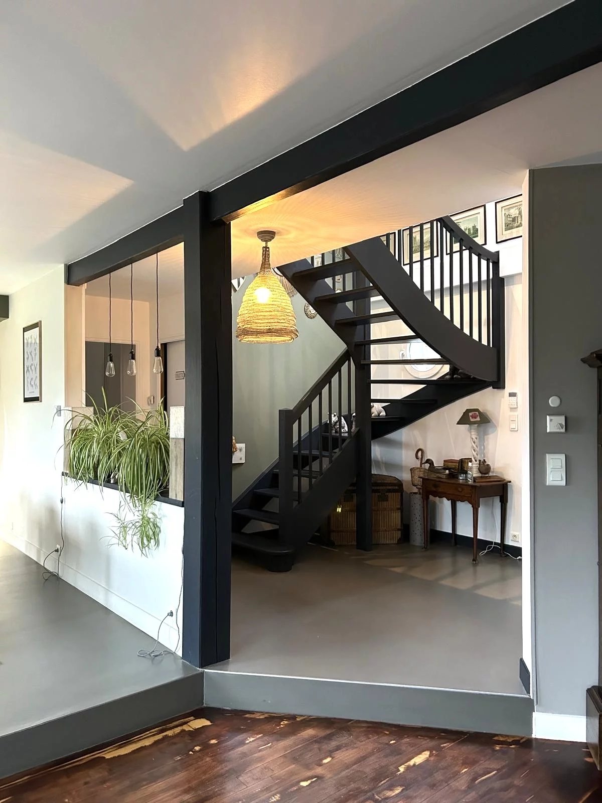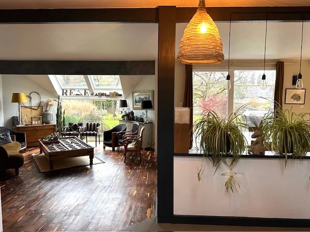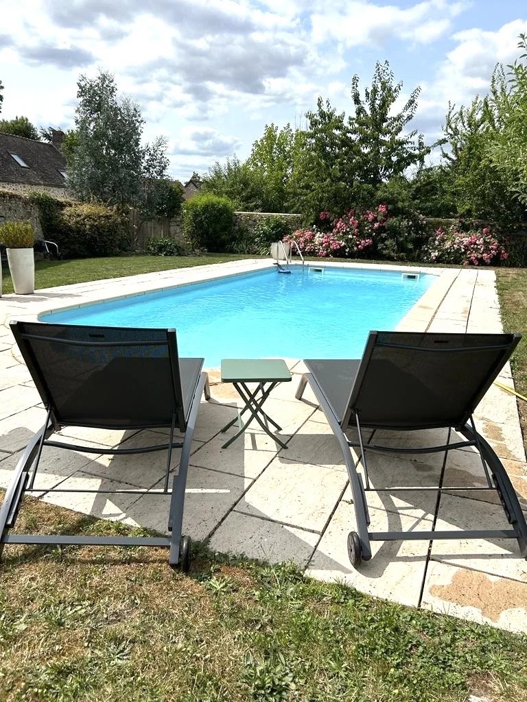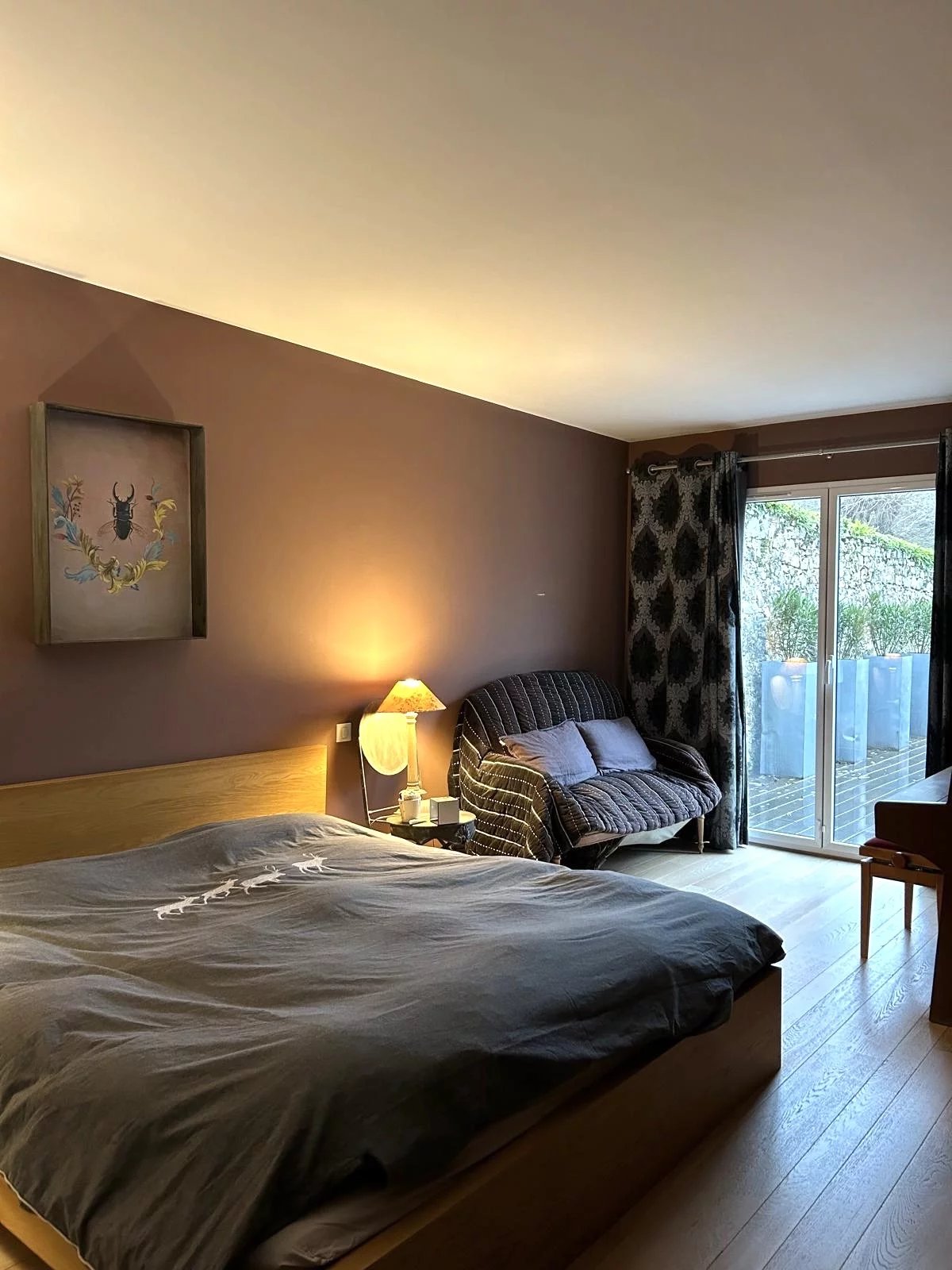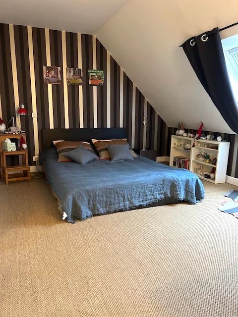 Niveau supérieur : Trois chambres dont une avec terrasse, un bureau ou chambre, une salle de bain et des toilettes séparées.
