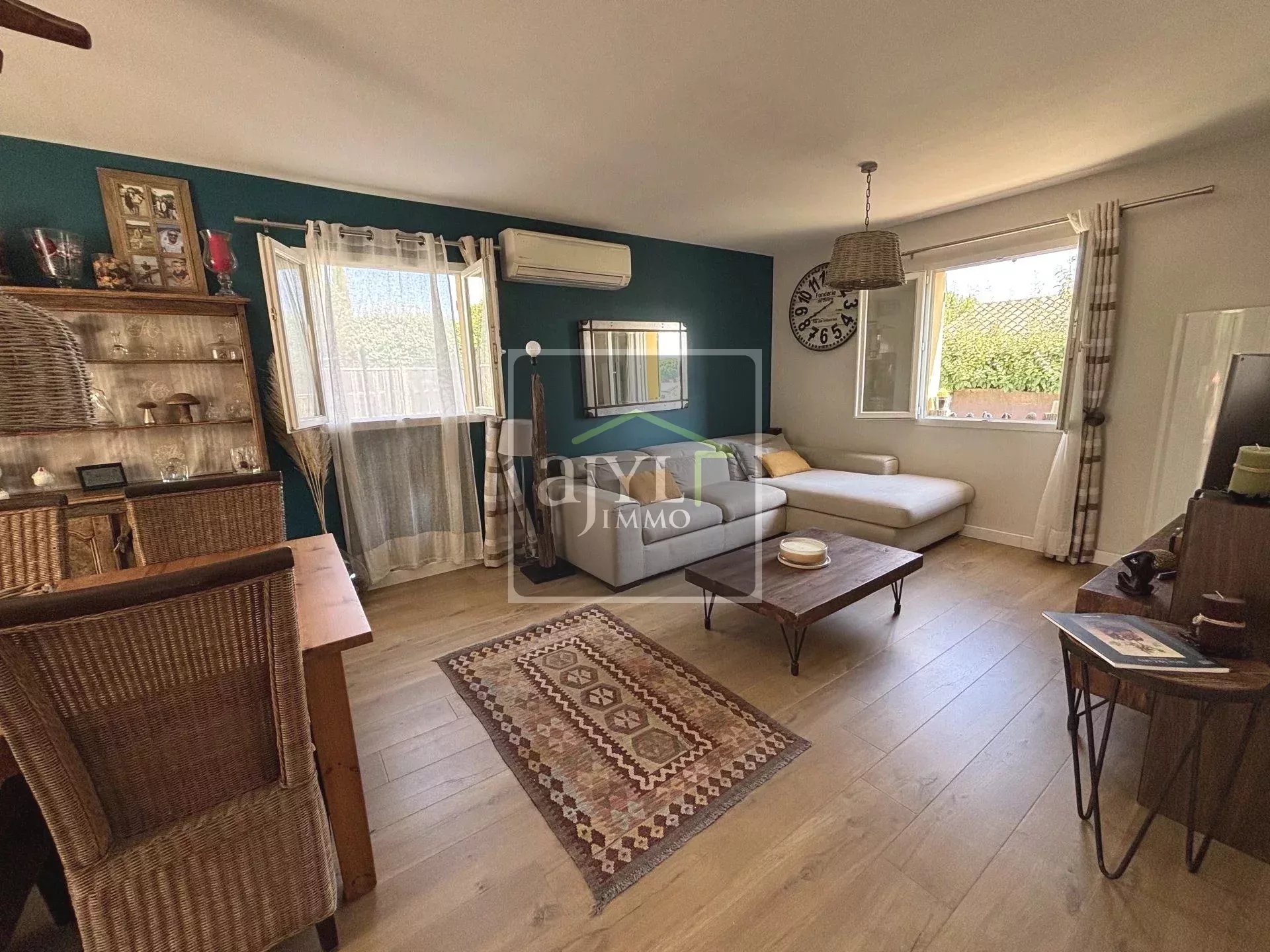 Située dans un lotissement résidentiel très calme, cette maison de type 4 offre un beau potentiel d'aménagement et d'évolution. Le bien se compose comme suit : 1 séjour spacieux de 28 m², 1 cuisine semi-ouverte, 2 chambres dont une grande chambre de 20 m2, facilement divisible pour en créer une troisième. Chaque chambre dispose de placards intégrés, tout comme la salle de bain. L'ancien garage a été transformé en espace habitable et peut-être aménagé en chambre d’amis, bureau ou pièce complémentaire selon vos projets. À l’extérieur, vous profiterez d’une belle terrasse carrelée de 25 m² sur un terrain de 509 m² piscinable. Possibilité d'agrandissement. À visiter sans tarder ! Prix : 395 000 € HAI