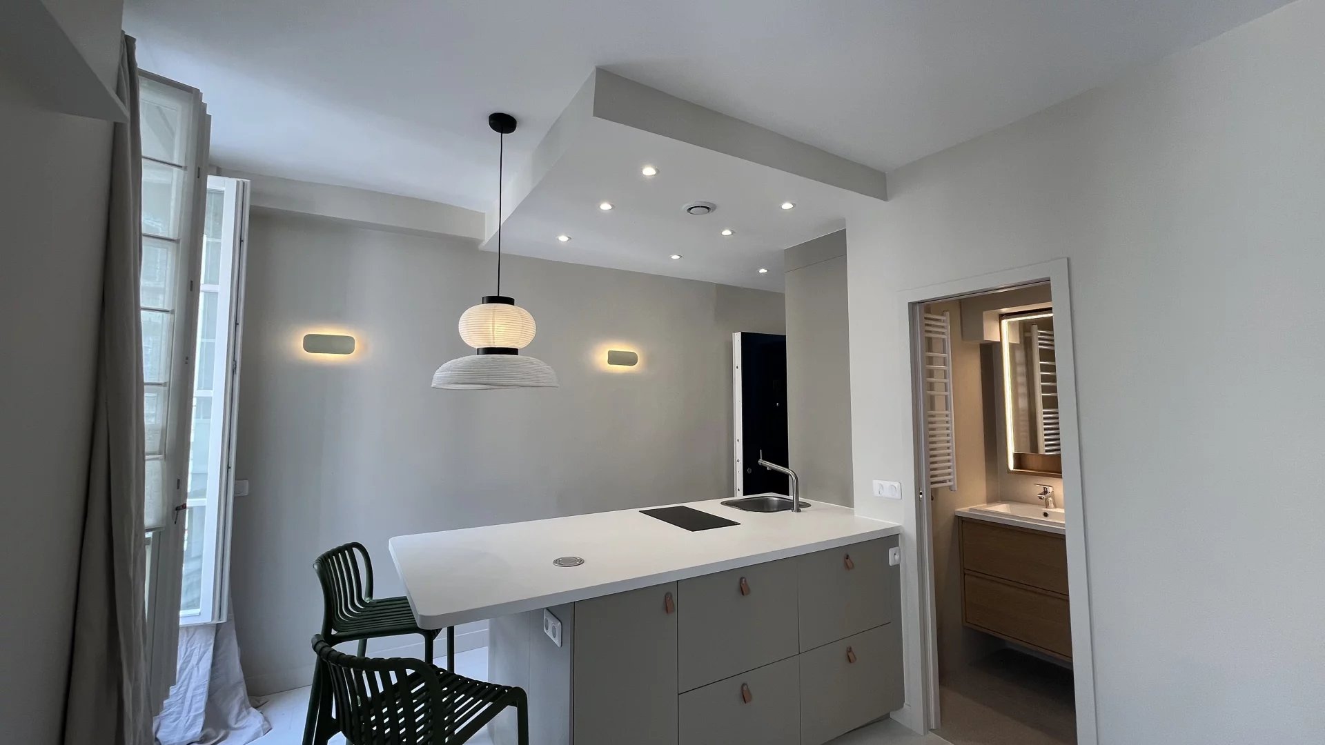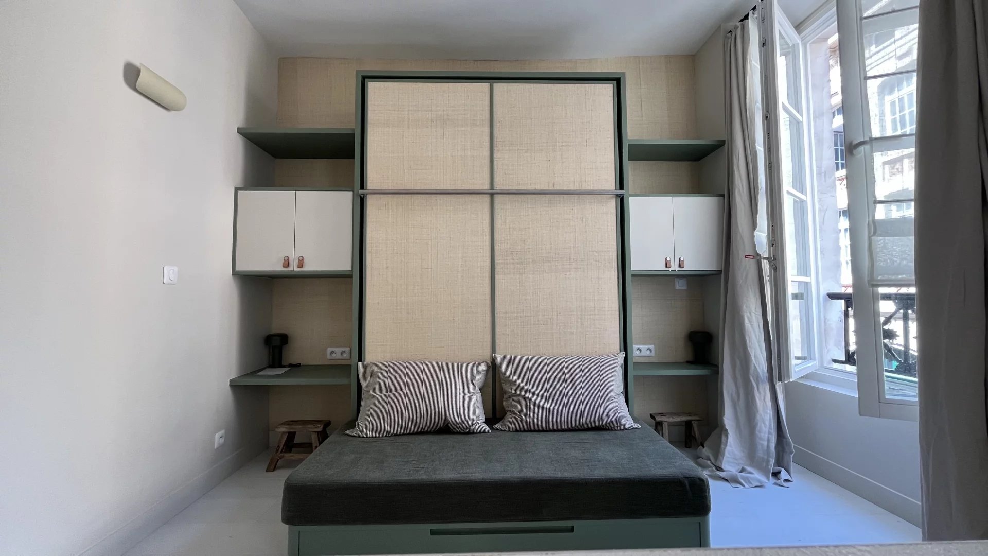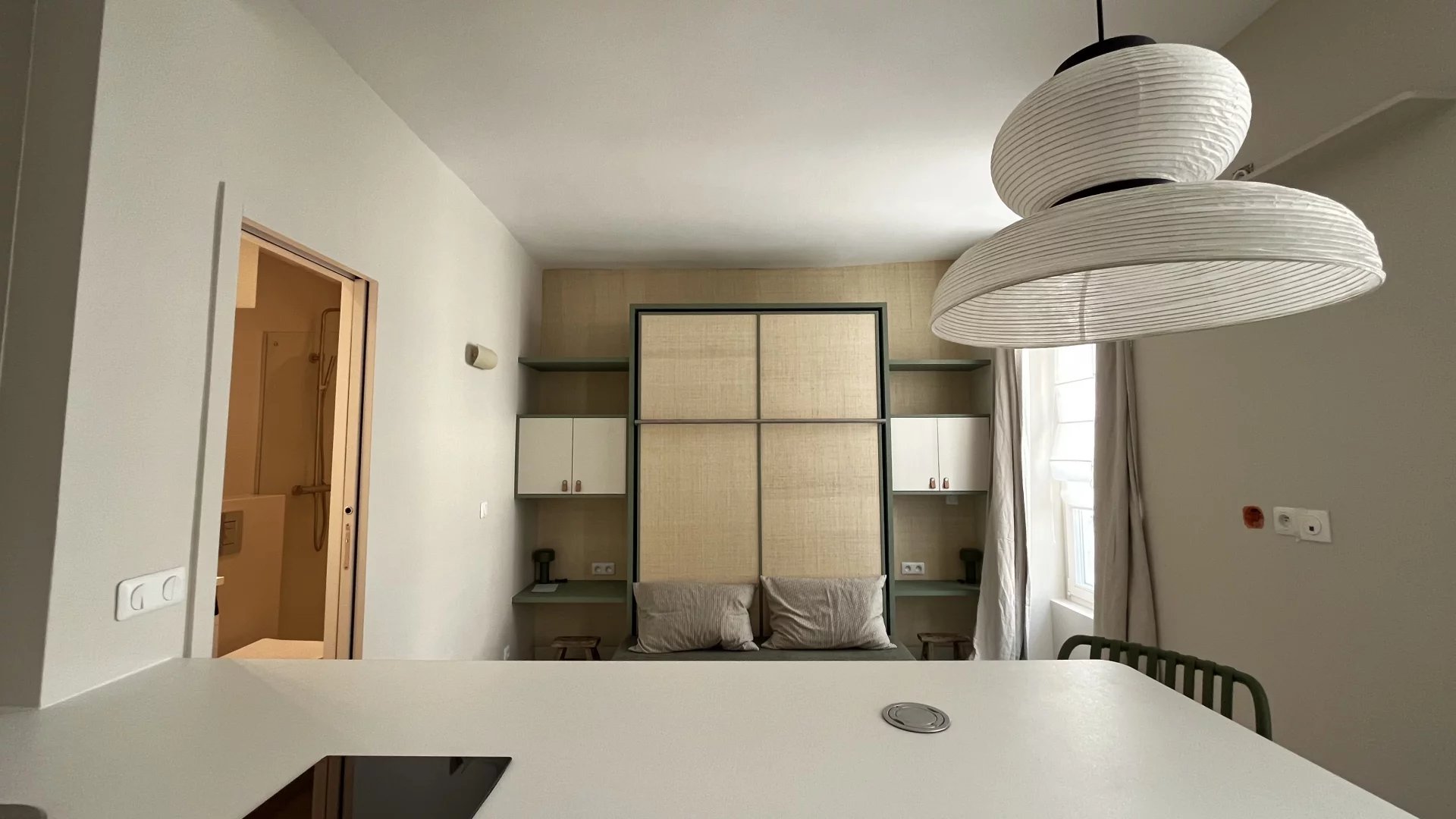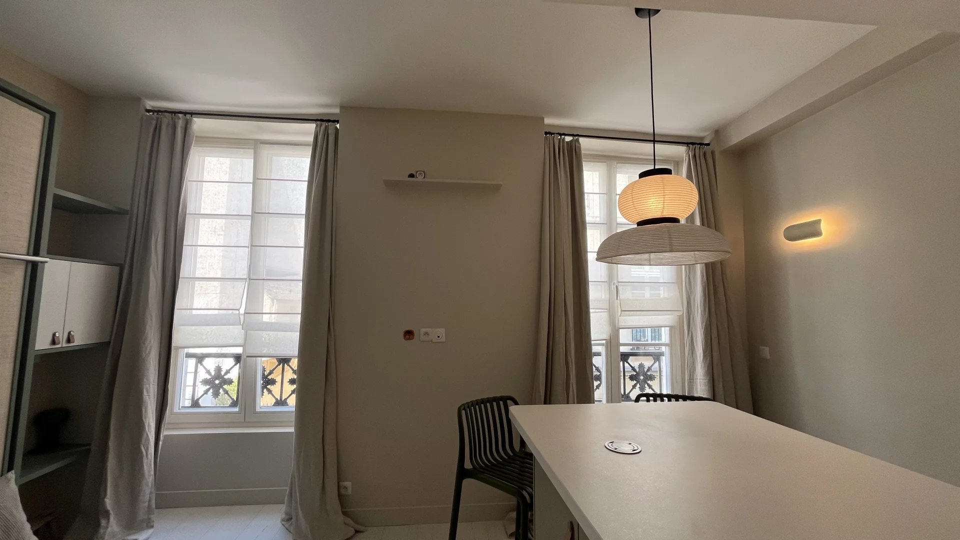 Rue du Jour, un très beau studio entièrement rénové, aménagé et meublé. Il se compose d'une entrée avec placard, un séjour avec 2 fenêtres, cuisine ouverte, canapé-lit déployant, et une salle de douches avec WC, machine à laver. Rénovation de qualité. Chauffage collectif, donc inclus dans les charges. Disponible le 1er septembre 2025.