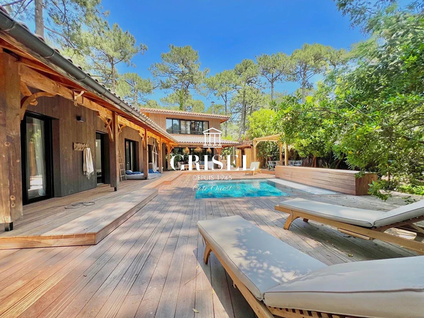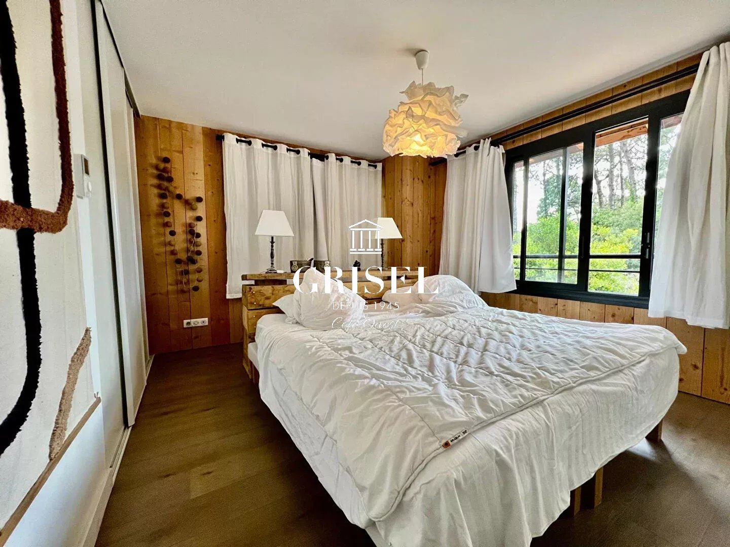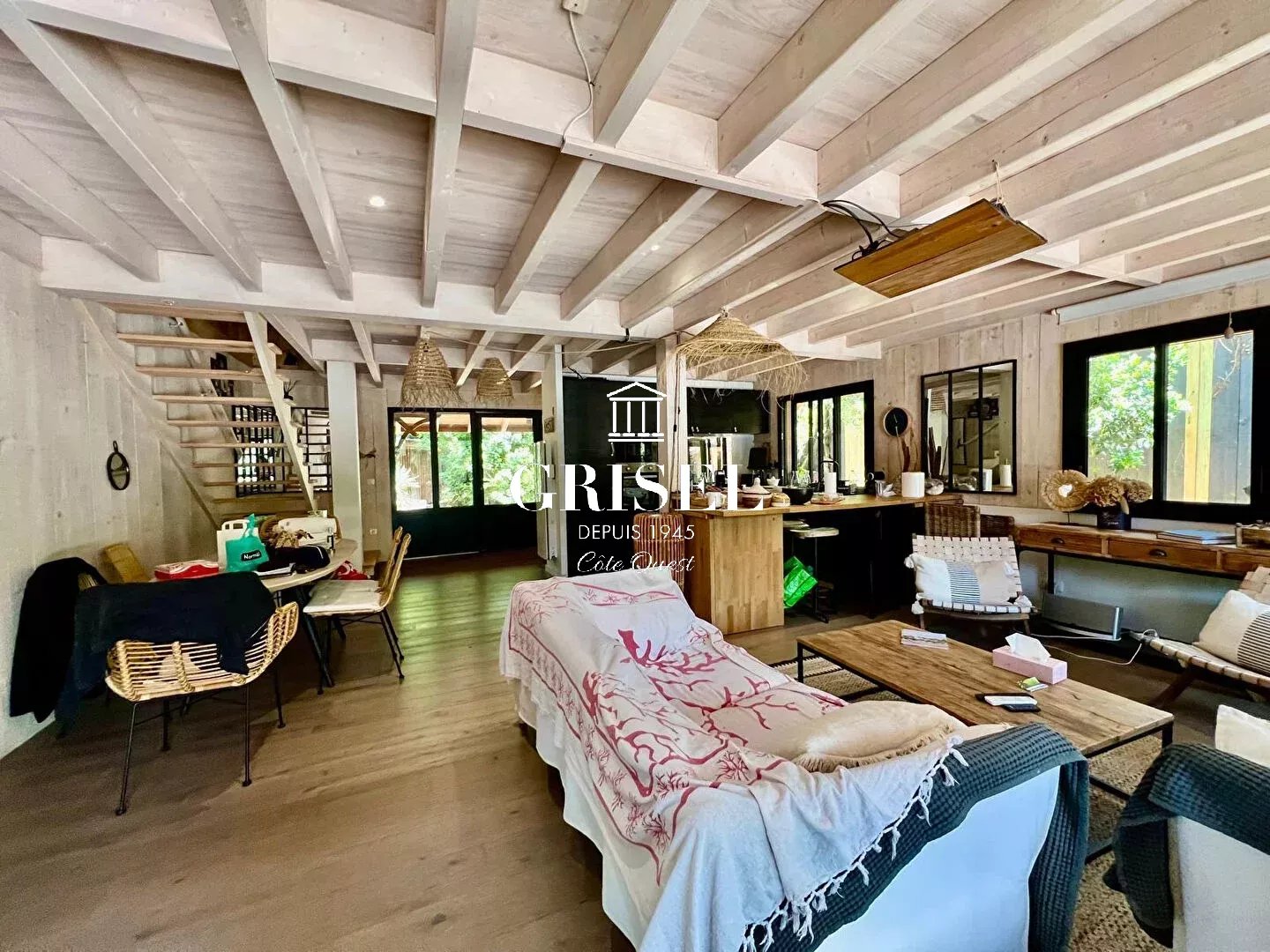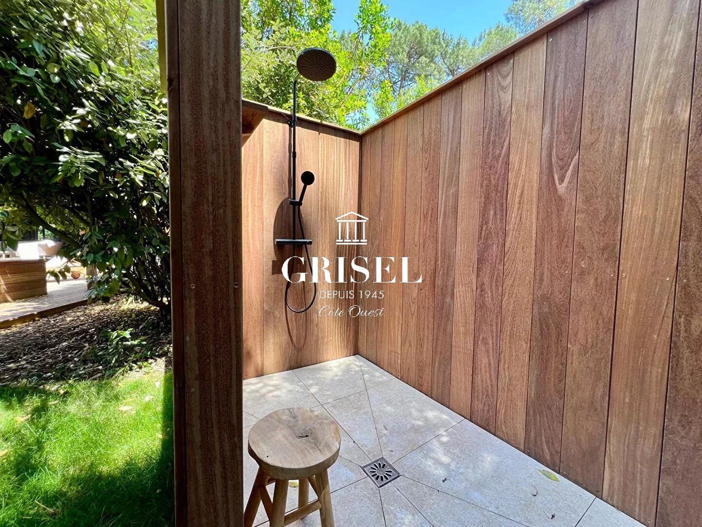 Bienvenue dans cette superbe villa en bois de 135 m², entièrement rénovée, nichée sur un terrain arboré de 805 m² dans le quartier paisible et recherché de Piraillan, à deux pas du marché, entre bassin et océan. Cette villa chaleureuse se compose de trois espaces de vie indépendants, idéale pour plusieurs familles ou un séjour entre amis : Partie principale : Grande pièce de vie lumineuse avec cuisine américaine aménagée et entièrement équipée, ouverte sur un salon/séjour exposé ouest. À l'étage : - 1 chambre climatisée avec 4 couchages -1 chambre double climatisée avec lit 180 cm, exposée ouest - 1 salle de bain avec baignoire et douche - 1 WC indépendant Deuxième partie (accès indépendant) : - 2 chambres doubles (lits 160 cm) - 1 salle d'eau avec WC Troisième partie attenante : - 1 chambre double (lit 160 cm) - 1 salle d'eau avec WC Profitez d'un bel espace extérieur pensé pour la détente : - Piscine avec deux fontaines, ambiance zen - Terrasse en bois neuve - Cuisine d'été équipée : plancha, évier, réfrigérateur - Espace repas sous pergola - Salon extérieur sous terrasse couverte - Éclairage extérieur pour profiter pleinement des soirées d'été