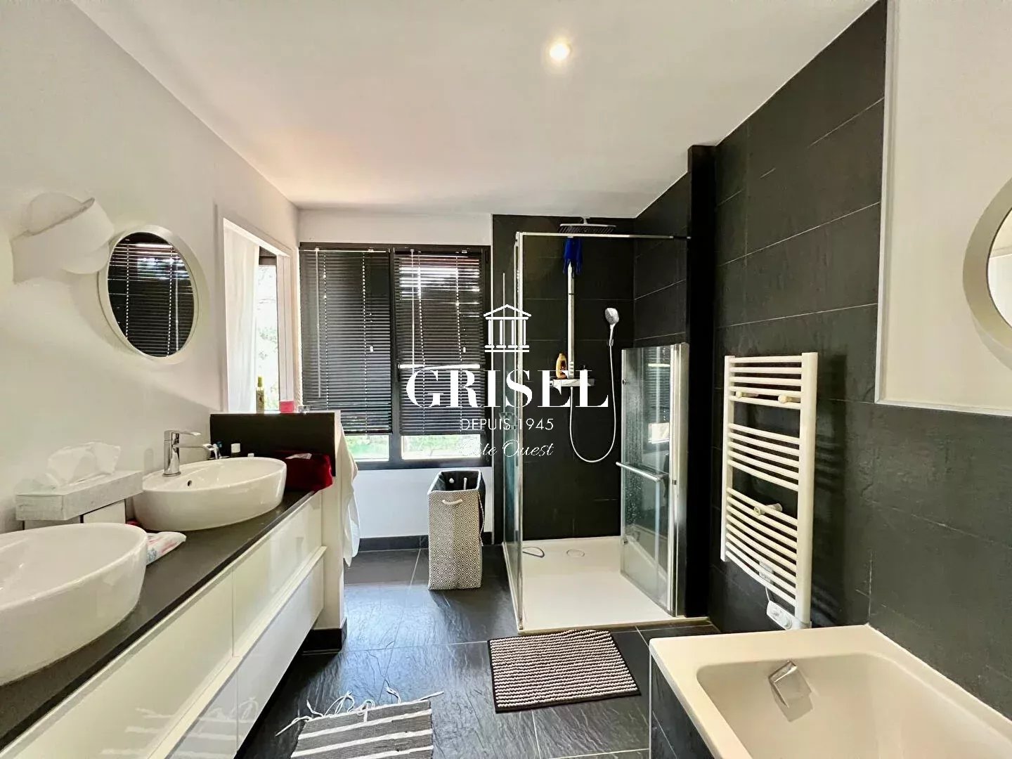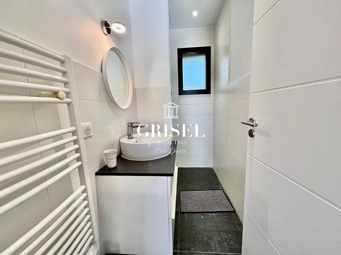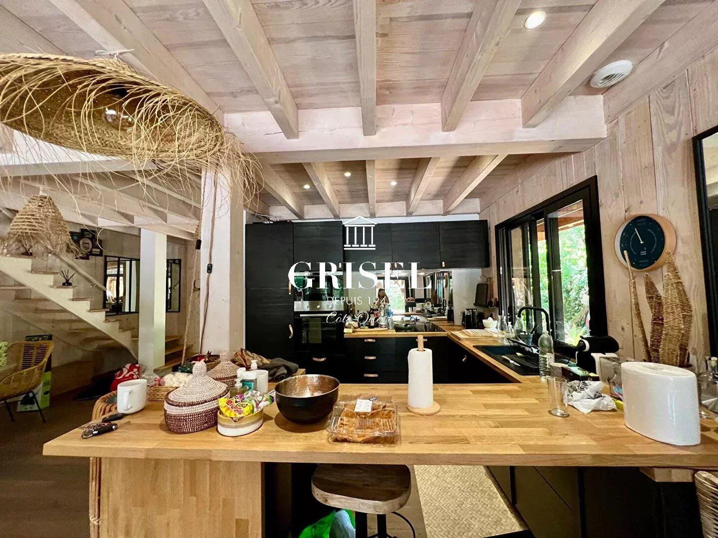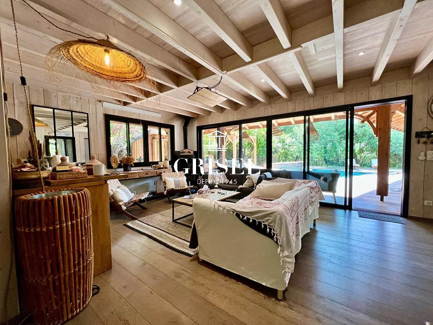 Bienvenue dans cette superbe villa en bois de 135 m², entièrement rénovée, nichée sur un terrain arboré de 805 m² dans le quartier paisible et recherché de Piraillan, à deux pas du marché, entre bassin et océan. Cette villa chaleureuse se compose de trois espaces de vie indépendants, idéale pour plusieurs familles ou un séjour entre amis : Partie principale : Grande pièce de vie lumineuse avec cuisine américaine aménagée et entièrement équipée, ouverte sur un salon/séjour exposé ouest. À l'étage : - 1 chambre climatisée avec 4 couchages -1 chambre double climatisée avec lit 180 cm, exposée ouest - 1 salle de bain avec baignoire et douche - 1 WC indépendant Deuxième partie (accès indépendant) : - 2 chambres doubles (lits 160 cm) - 1 salle d'eau avec WC Troisième partie attenante : - 1 chambre double (lit 160 cm) - 1 salle d'eau avec WC Profitez d'un bel espace extérieur pensé pour la détente : - Piscine avec deux fontaines, ambiance zen - Terrasse en bois neuve - Cuisine d'été équipée : plancha, évier, réfrigérateur - Espace repas sous pergola - Salon extérieur sous terrasse couverte - Éclairage extérieur pour profiter pleinement des soirées d'été