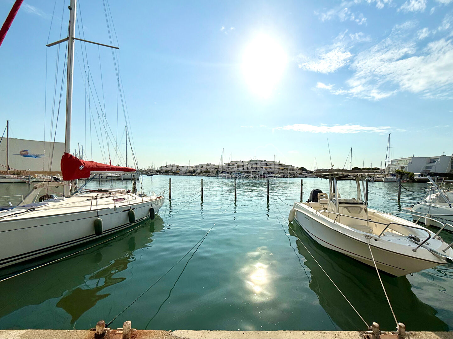 Marina de type P3 avec cabine, en excellent état et idéalement situé à proximité immédiate des commerces et de la plage. Elle se compose d'une cuisine aménagée et entièrement équipée, ouverte sur un lumineux séjour donnant accès à une spacieuse terrasse avec vue imprenable sur le port. L'espace nuit offre deux chambres avec placards intégrés, dont une avec terrasse privative, ainsi qu'une cabine lumineuse grâce à sa fenêtre. Une salle d'eau moderne et un WC indépendant complètent l'ensemble. Stationnement assuré grâce à une place de parking privative. Un appontement de 3 m x 15 m vient parfaire ce bien d'exception. Exposition Est Copropriété de 240 lots - dont 52 lots habitation. (). Charges annuelles : 600 euros.