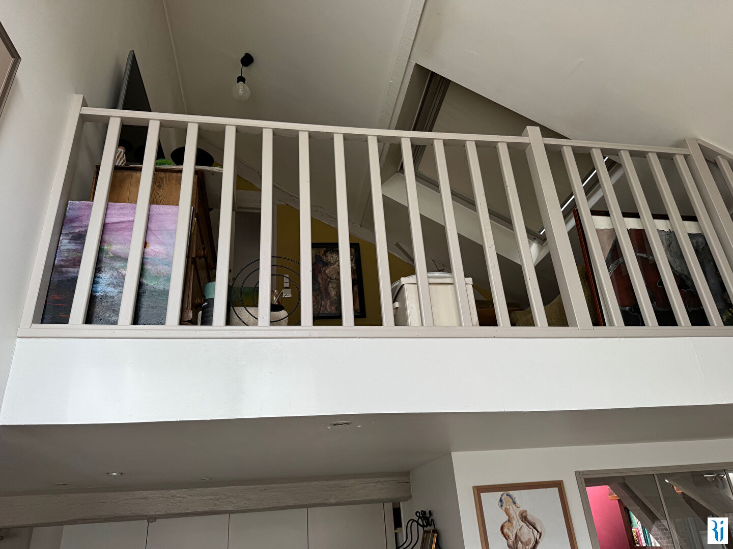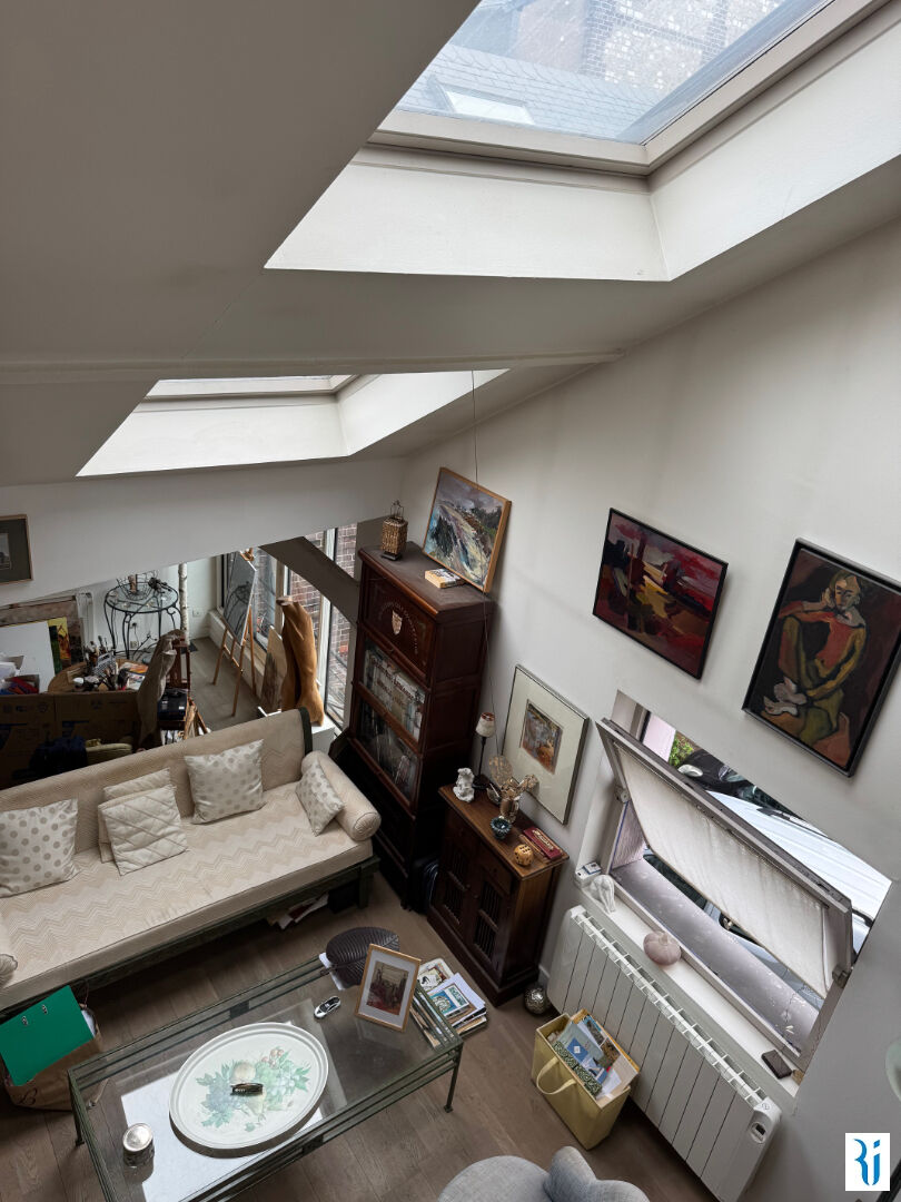 DUPLEX LUMINEUX - STYLE ATELIER D'ARTISTE - ROUEN NOUVELLE PREFECTURE. Un esprit loft niché au calme d'une cour intérieure Duplex 1er étage avec velux et lumière à foison, 2 grandes chambres + mezzanine bureau, 2 salle de douche, 2 wc, pièces atelier/bureau en rdc et à l'étage, cuisine ouverte sur salle à manger et salon, chauffage individuel électrique. stationnement privatif. Localisation idéale : accès rapide autoroutes et quais RD. Coup de coeur : volumes ouverts, charme industriel, luminosité exceptionnelle (4.91 % honoraires TTC à la charge de l'acquéreur.) Copropriété de 9 lots - dont 5 lots habitation. (Pas de procédure en cours). Charges annuelles : 1120 euros. Evelyne LAKDAR (EI) Agent Commercial - Numéro RSAC : - .