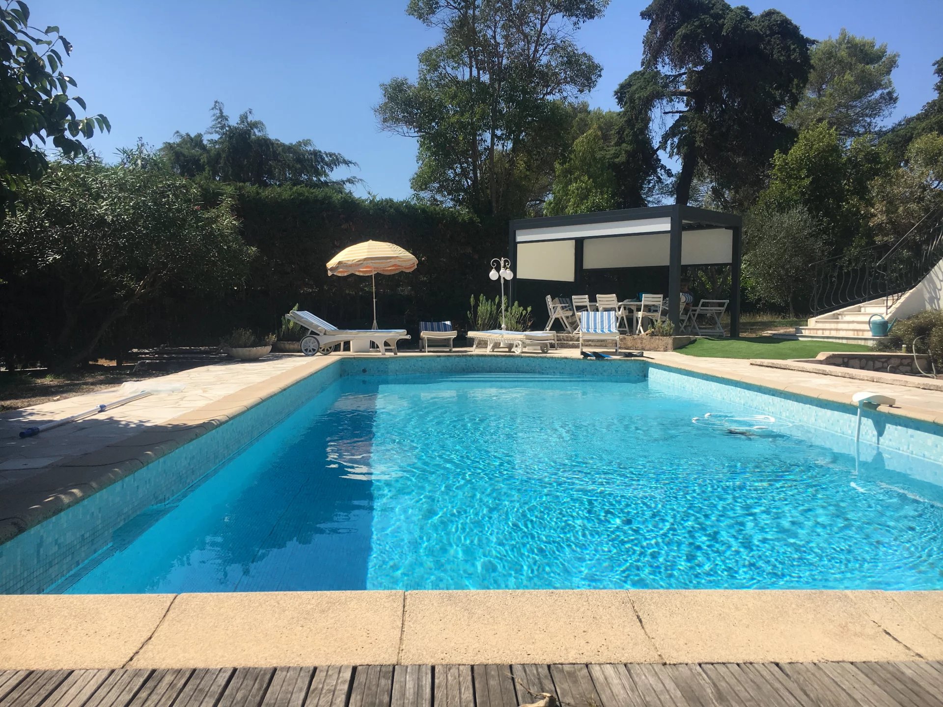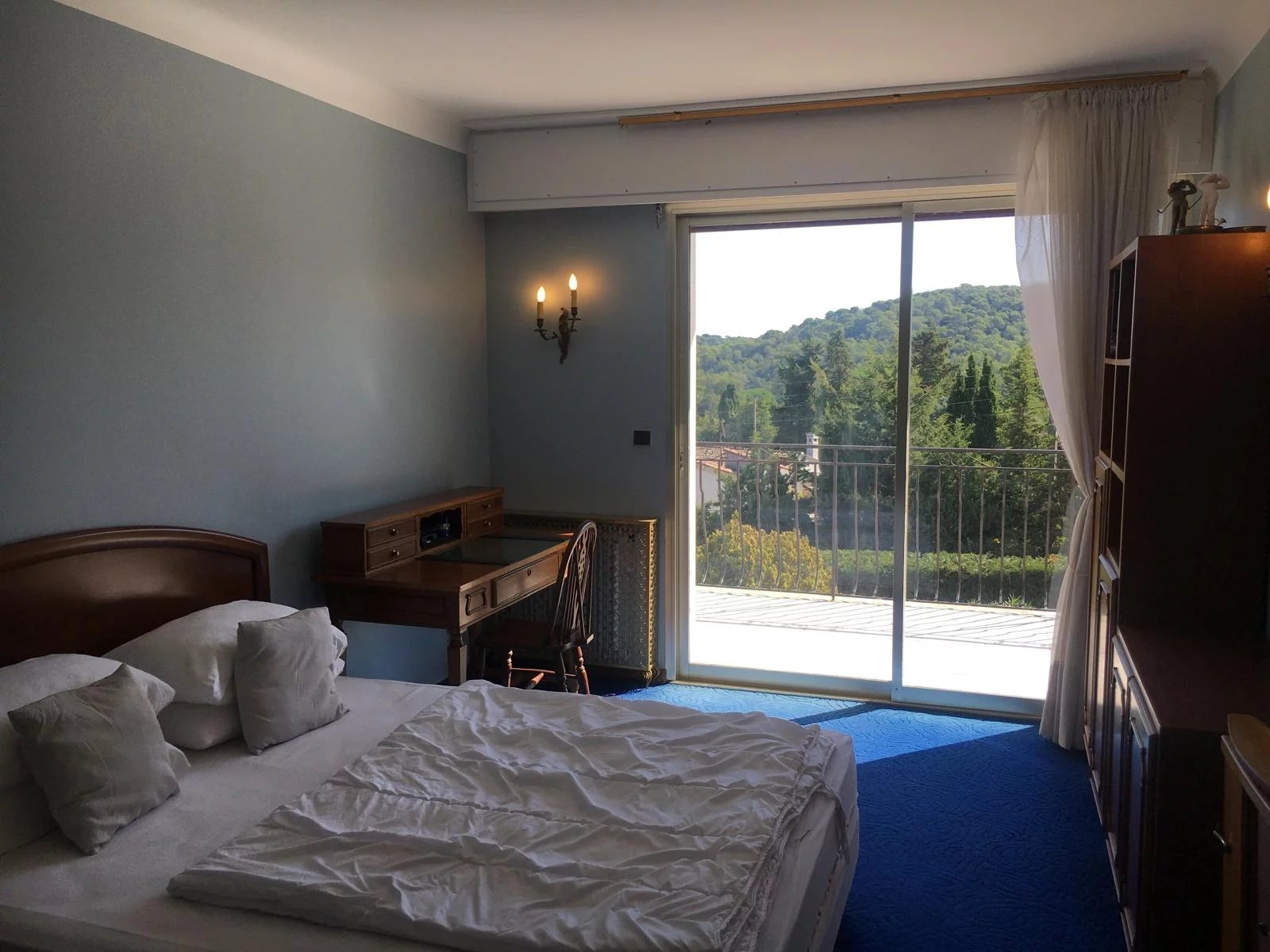 Idéalement située dans le domaine fermé de La Peyrière entre Mougins School et le Golf, grande et luxueuse Villa de 318 m2 habitables à louer en Meublé Longue Durée. Elle se compose de 9 pièces, dont 6 belles chambres, 1 grand séjour plus 1 grande salle à manger, 1 bureau et 3 salles de bain/douche, ainsi qu'une grande cuisine. Sur 3 niveaux (1er, RDC, Rez de jardin) elle offre une splendide vue panoramique sur la campagne.