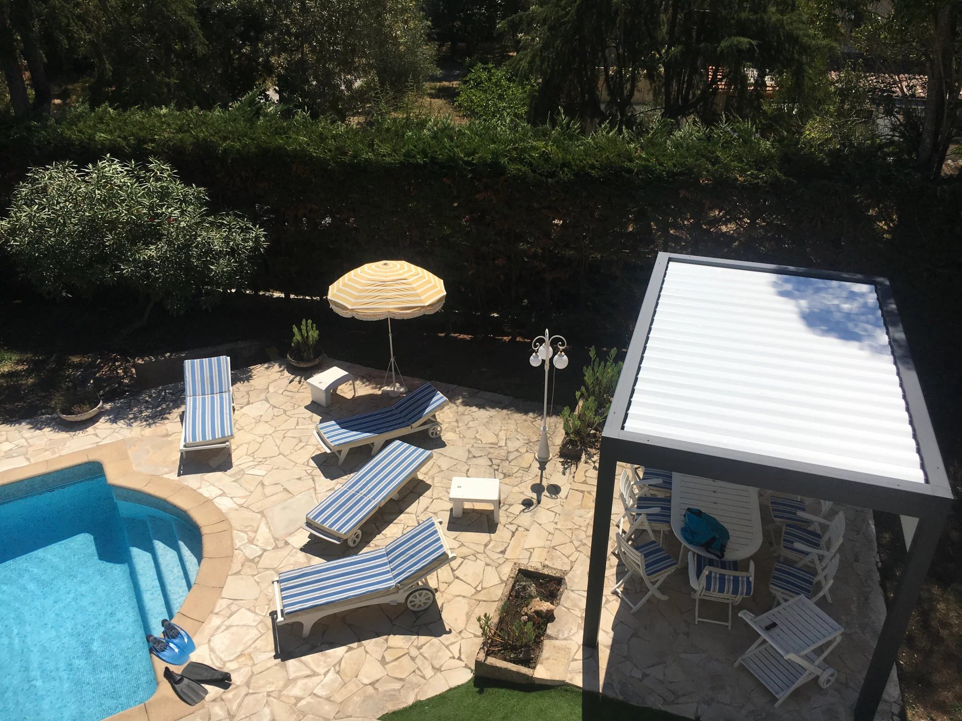 A l'extérieur elle dispose d'un beau jardin provençal de plus de 1600 m2 avec un grande piscine au sel, d'une pergola, d'un grand garage, de parkings, d'un portail électrique, de 3 terrasses, d'un barbecue et d'un accès semi-privé dans le domaine.