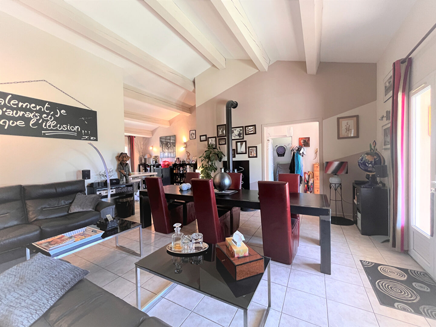 Charmante Villa de plain-pied de 116 m² habitable et de 145 m² bâtie, sur un terrain arboré de 1 163 m², idéalement orientée plein sud.