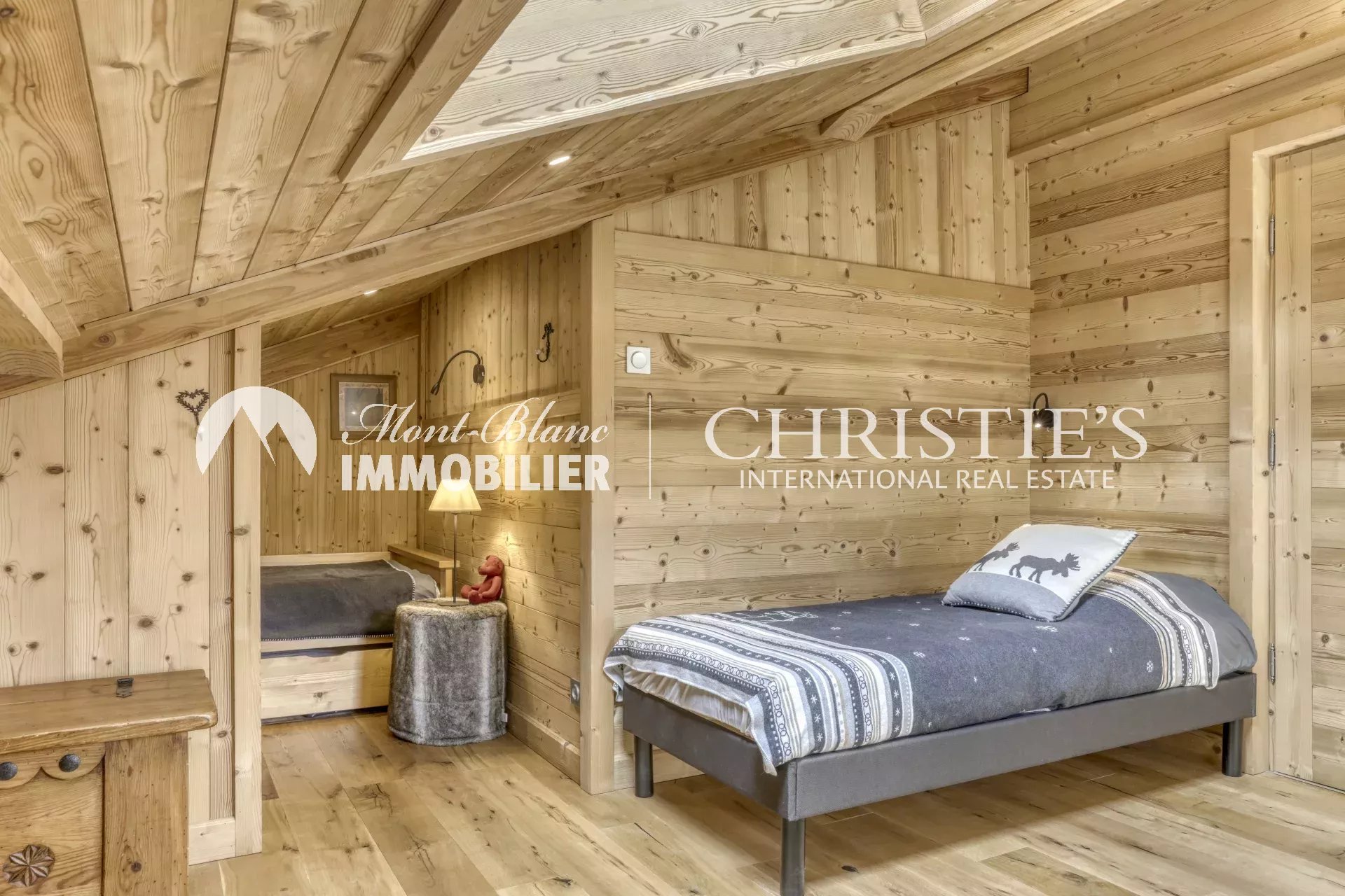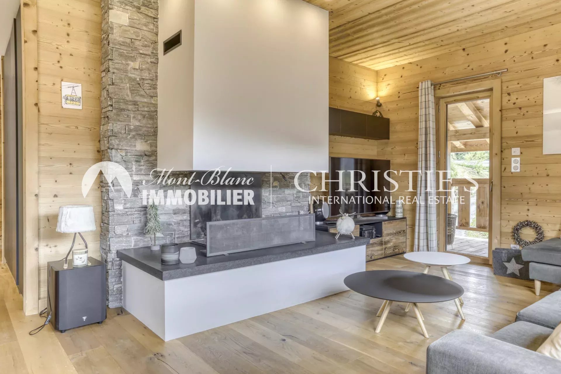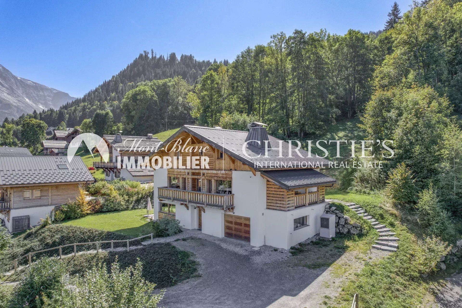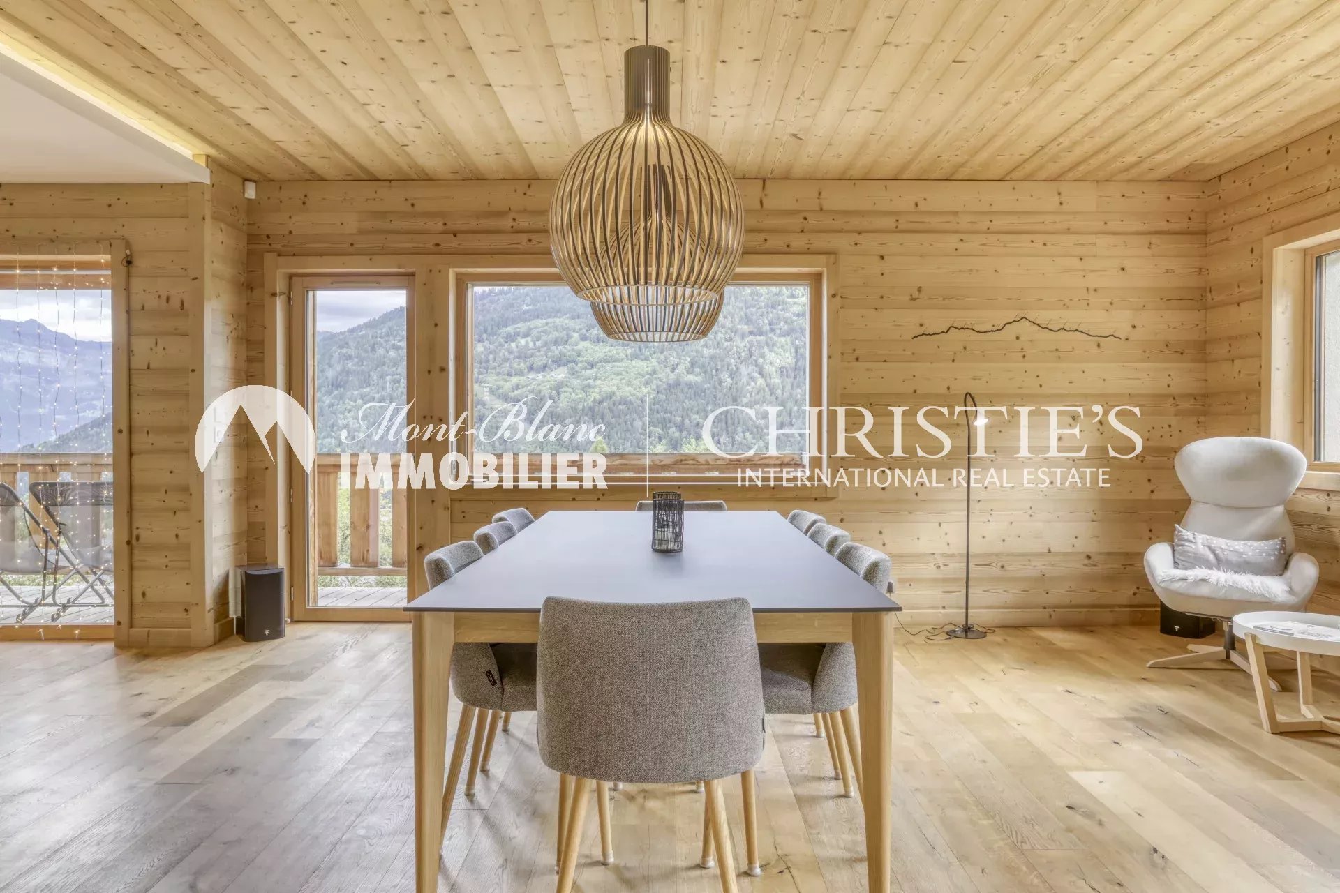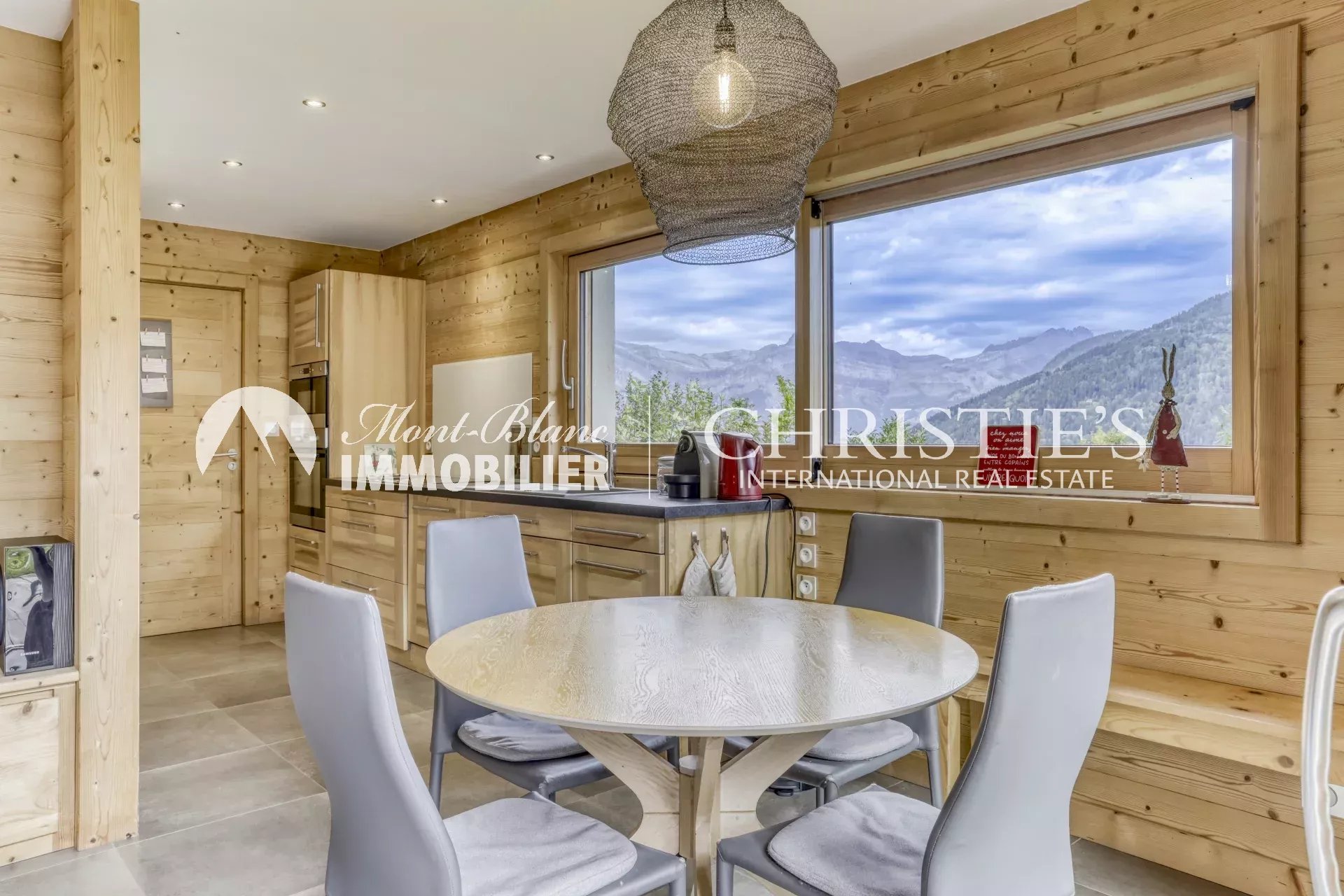 CHALET SKI IN & OUT – VUE PANORAMIQUE SUR LE MONT-BLANC Saint-Nicolas-de-Véroce – Saint-Gervais-les-Bains Ski aux pieds, calme absolu et panorama à couper le souffle sur le Mont-Blanc : ce chalet d’exception réunit tous les atouts pour les amoureux de montagne et de modernité. Situé à 1 200 m d’altitude, dans le secteur très prisé du hameau de Saint-Nicolas, ce chalet de 340 m² aux volumes généreux se déploie sur trois niveaux. Chaque espace, baigné de lumière, a été pensé pour inviter à la contemplation. La vaste pièce de vie de plus de 70 m² séduit par son incroyable vue sur la chaîne du Mont-Blanc et son accès direct aux terrasses et au jardin. Un salon avec cheminée contemporaine et larges baies vitrées crée une atmosphère douce et chaleureuse. Côté nuit : 2 chambres en suites, 4 chambres confortables, 2 salles d’eau et un grand dortoir familial. Un appartement T3 indépendant vient compléter l’ensemble : idéal pour accueillir famille et amis, ou générer des revenus locatifs attractifs. Annexes pratiques : grand garage, local à skis, buanderie, cave, cellier et carport de 35 m². Pré étude pour un ascenseur possible. Construit récemment, le chalet allie confort moderne et respect de l’environnement grâce à des équipements haut de gamme : chauffage au sol, pompe à chaleur, cheminée performante. Sa très bonne performance énergétique en fait un bien aussi élégant qu’écologique. Un chalet rare, lumineux et spacieux, pensé pour des instants uniques face au Mont-Blanc, à seulement quelques minutes du centre de Saint-Nicolas-de-Véroce et avec un accès direct à pied aux pistes de ski ou aux sentiers de randonnée. L’alliance parfaite entre design contemporain et chaleur du bois, tissus raffinés et jeux de lumière, offrant confort, bien-être et immersion dans la nature.