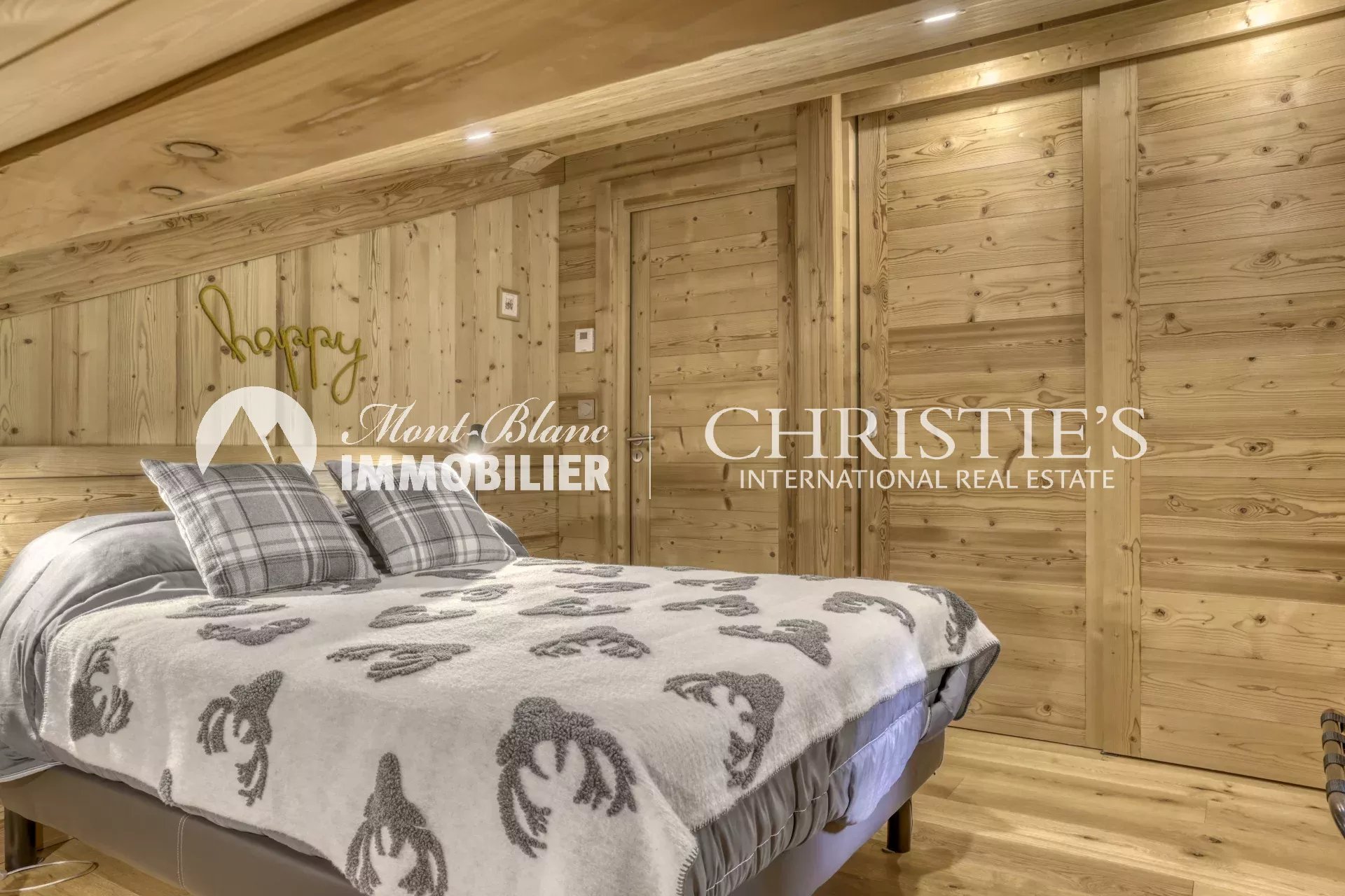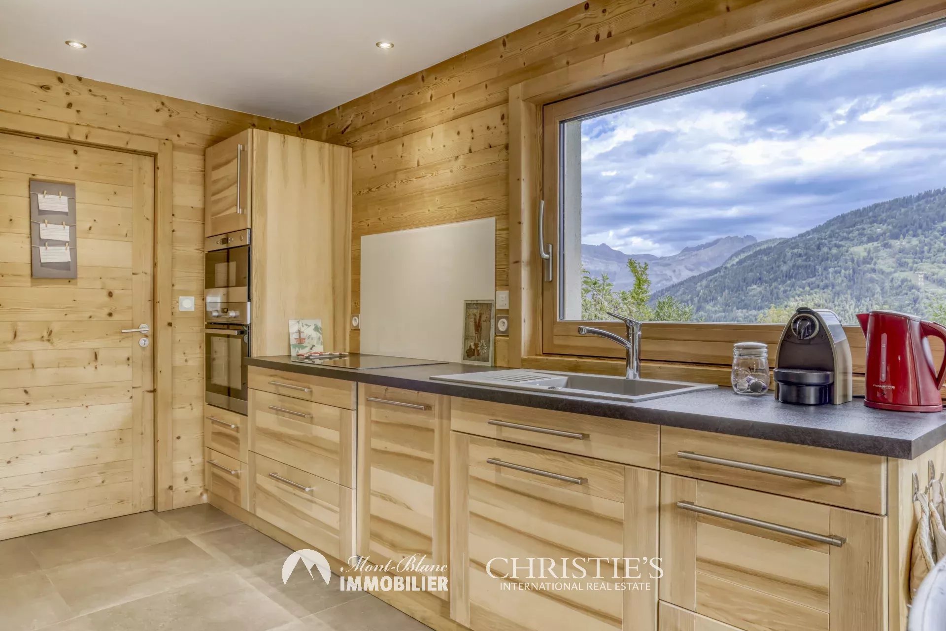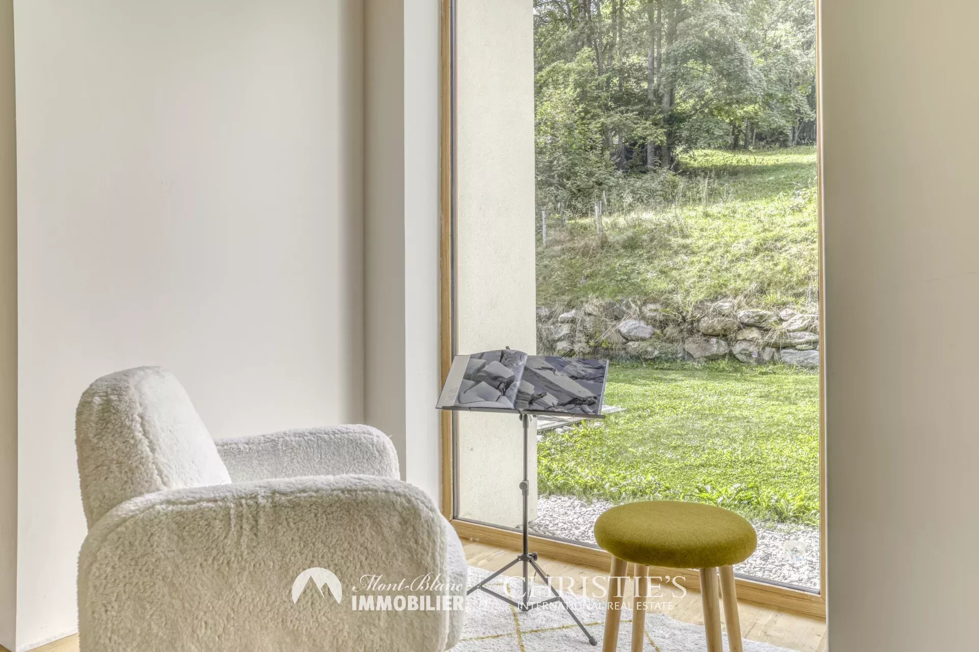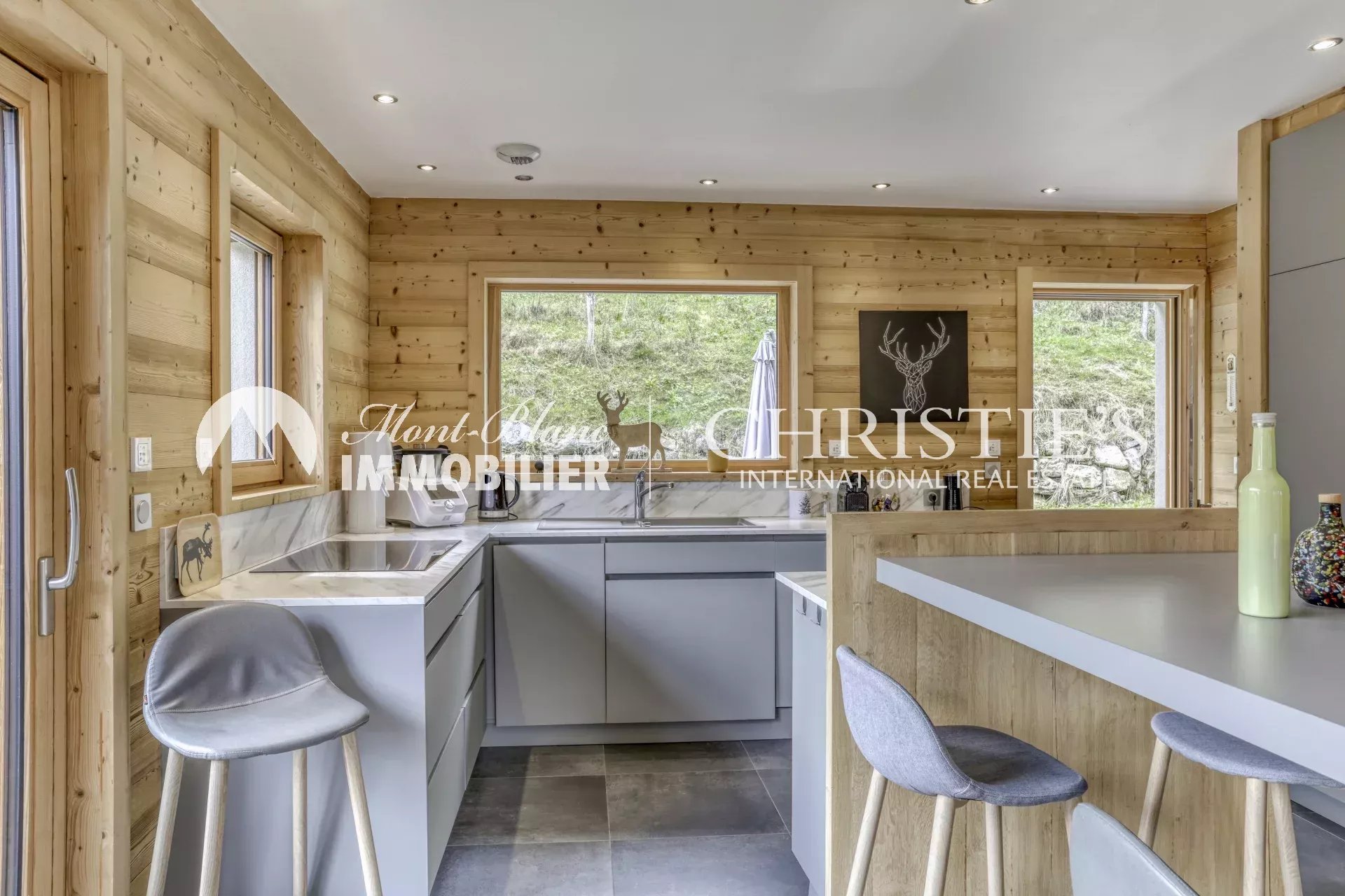 CHALET SKI IN & OUT – VUE PANORAMIQUE SUR LE MONT-BLANC Saint-Nicolas-de-Véroce – Saint-Gervais-les-Bains Ski aux pieds, calme absolu et panorama à couper le souffle sur le Mont-Blanc : ce chalet d’exception réunit tous les atouts pour les amoureux de montagne et de modernité. Situé à 1 200 m d’altitude, dans le secteur très prisé du hameau de Saint-Nicolas, ce chalet de 340 m² aux volumes généreux se déploie sur trois niveaux. Chaque espace, baigné de lumière, a été pensé pour inviter à la contemplation. La vaste pièce de vie de plus de 70 m² séduit par son incroyable vue sur la chaîne du Mont-Blanc et son accès direct aux terrasses et au jardin. Un salon avec cheminée contemporaine et larges baies vitrées crée une atmosphère douce et chaleureuse. Côté nuit : 2 chambres en suites, 4 chambres confortables, 2 salles d’eau et un grand dortoir familial. Un appartement T3 indépendant vient compléter l’ensemble : idéal pour accueillir famille et amis, ou générer des revenus locatifs attractifs. Annexes pratiques : grand garage, local à skis, buanderie, cave, cellier et carport de 35 m². Pré étude pour un ascenseur possible. Construit récemment, le chalet allie confort moderne et respect de l’environnement grâce à des équipements haut de gamme : chauffage au sol, pompe à chaleur, cheminée performante. Sa très bonne performance énergétique en fait un bien aussi élégant qu’écologique. Un chalet rare, lumineux et spacieux, pensé pour des instants uniques face au Mont-Blanc, à seulement quelques minutes du centre de Saint-Nicolas-de-Véroce et avec un accès direct à pied aux pistes de ski ou aux sentiers de randonnée. L’alliance parfaite entre design contemporain et chaleur du bois, tissus raffinés et jeux de lumière, offrant confort, bien-être et immersion dans la nature.