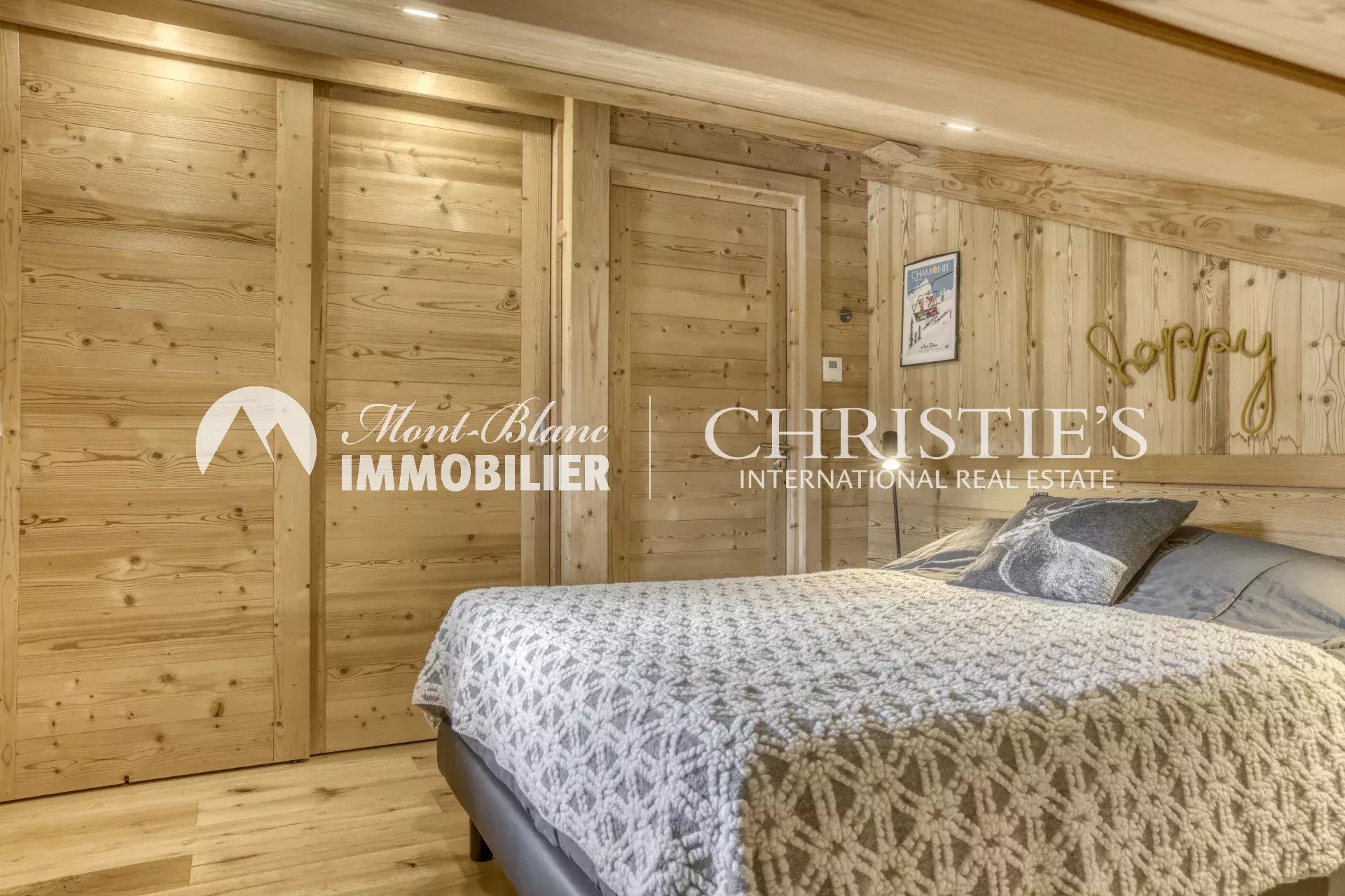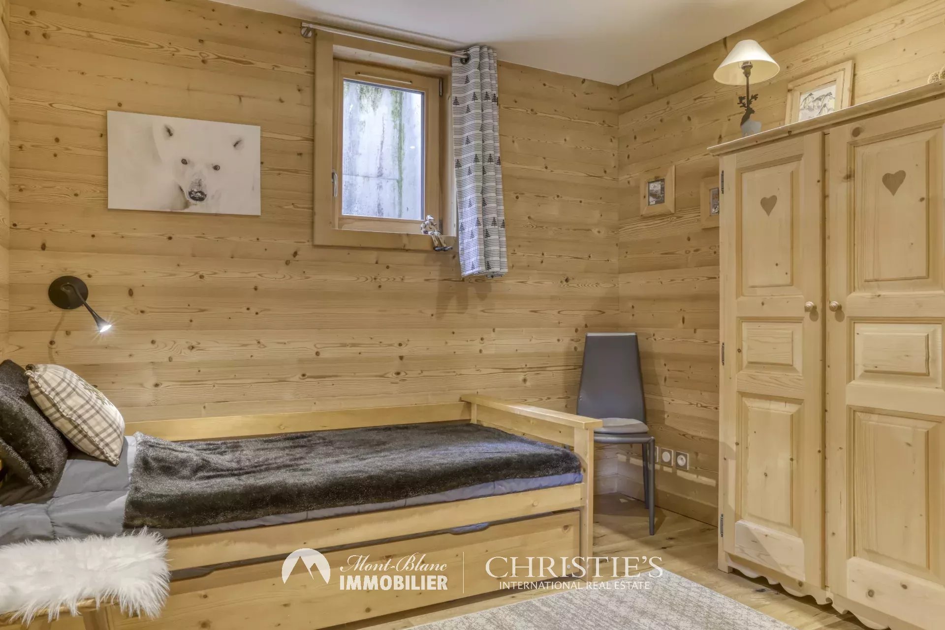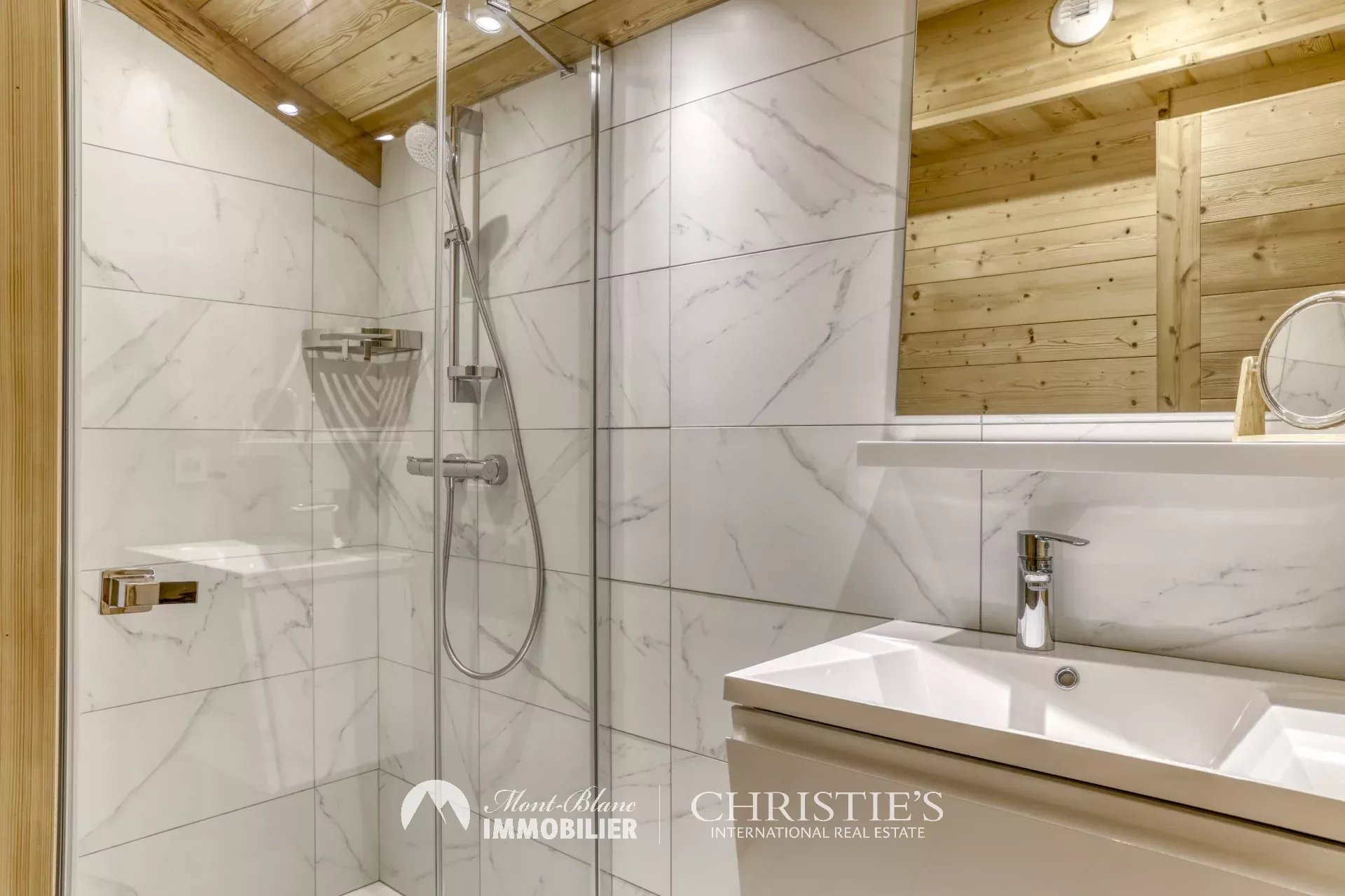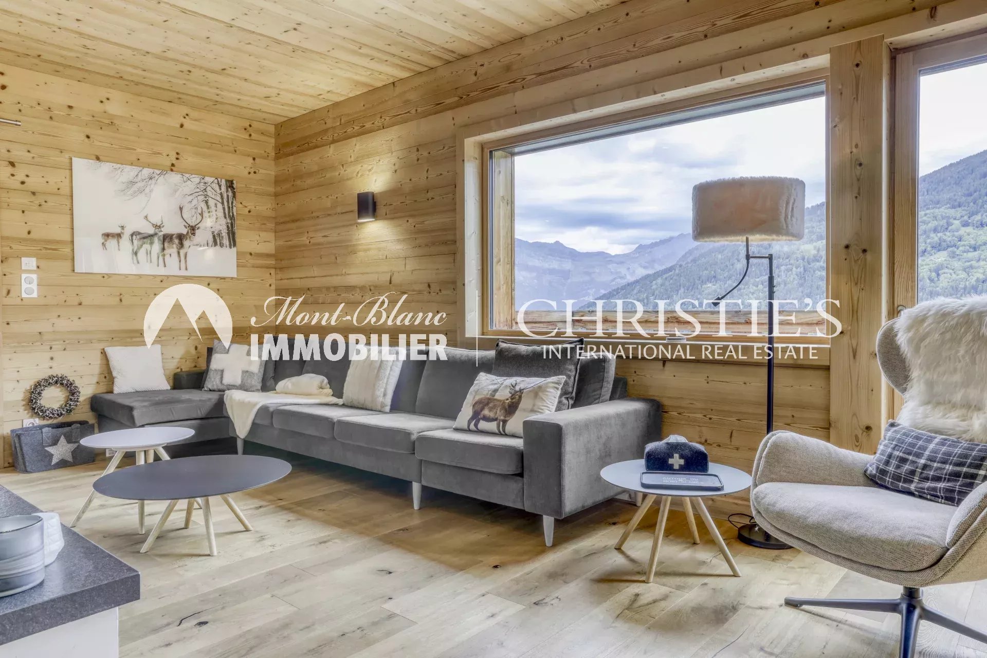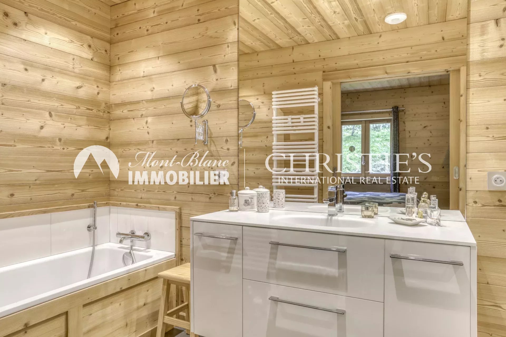 CHALET SKI IN & OUT – VUE PANORAMIQUE SUR LE MONT-BLANC Saint-Nicolas-de-Véroce – Saint-Gervais-les-Bains Ski aux pieds, calme absolu et panorama à couper le souffle sur le Mont-Blanc : ce chalet d’exception réunit tous les atouts pour les amoureux de montagne et de modernité. Situé à 1 200 m d’altitude, dans le secteur très prisé du hameau de Saint-Nicolas, ce chalet de 340 m² aux volumes généreux se déploie sur trois niveaux. Chaque espace, baigné de lumière, a été pensé pour inviter à la contemplation. La vaste pièce de vie de plus de 70 m² séduit par son incroyable vue sur la chaîne du Mont-Blanc et son accès direct aux terrasses et au jardin. Un salon avec cheminée contemporaine et larges baies vitrées crée une atmosphère douce et chaleureuse. Côté nuit : 2 chambres en suites, 4 chambres confortables, 2 salles d’eau et un grand dortoir familial. Un appartement T3 indépendant vient compléter l’ensemble : idéal pour accueillir famille et amis, ou générer des revenus locatifs attractifs. Annexes pratiques : grand garage, local à skis, buanderie, cave, cellier et carport de 35 m². Pré étude pour un ascenseur possible. Construit récemment, le chalet allie confort moderne et respect de l’environnement grâce à des équipements haut de gamme : chauffage au sol, pompe à chaleur, cheminée performante. Sa très bonne performance énergétique en fait un bien aussi élégant qu’écologique. Un chalet rare, lumineux et spacieux, pensé pour des instants uniques face au Mont-Blanc, à seulement quelques minutes du centre de Saint-Nicolas-de-Véroce et avec un accès direct à pied aux pistes de ski ou aux sentiers de randonnée. L’alliance parfaite entre design contemporain et chaleur du bois, tissus raffinés et jeux de lumière, offrant confort, bien-être et immersion dans la nature.