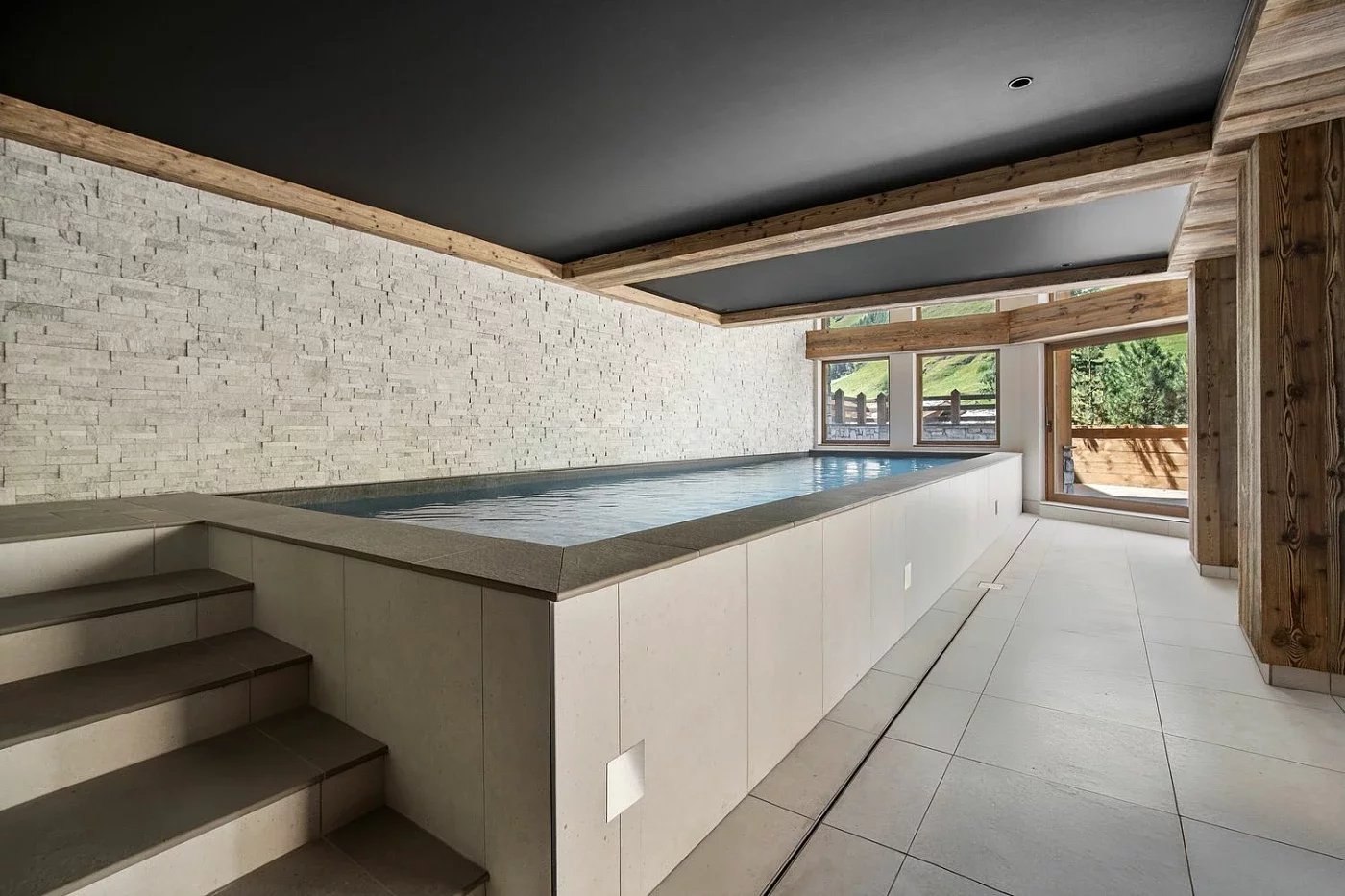 Atouts : Skis aux pieds, matériaux nobles (bois, pierre), finitions haut de gamme