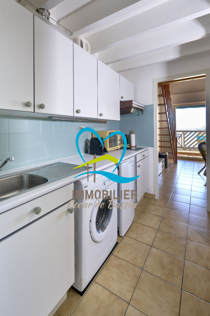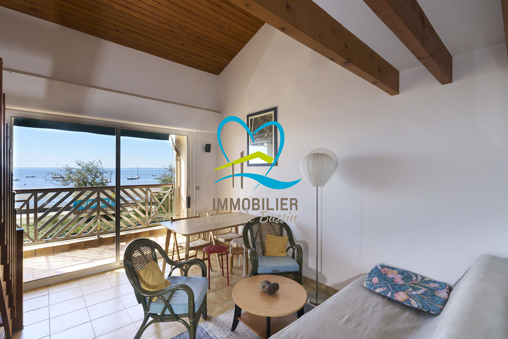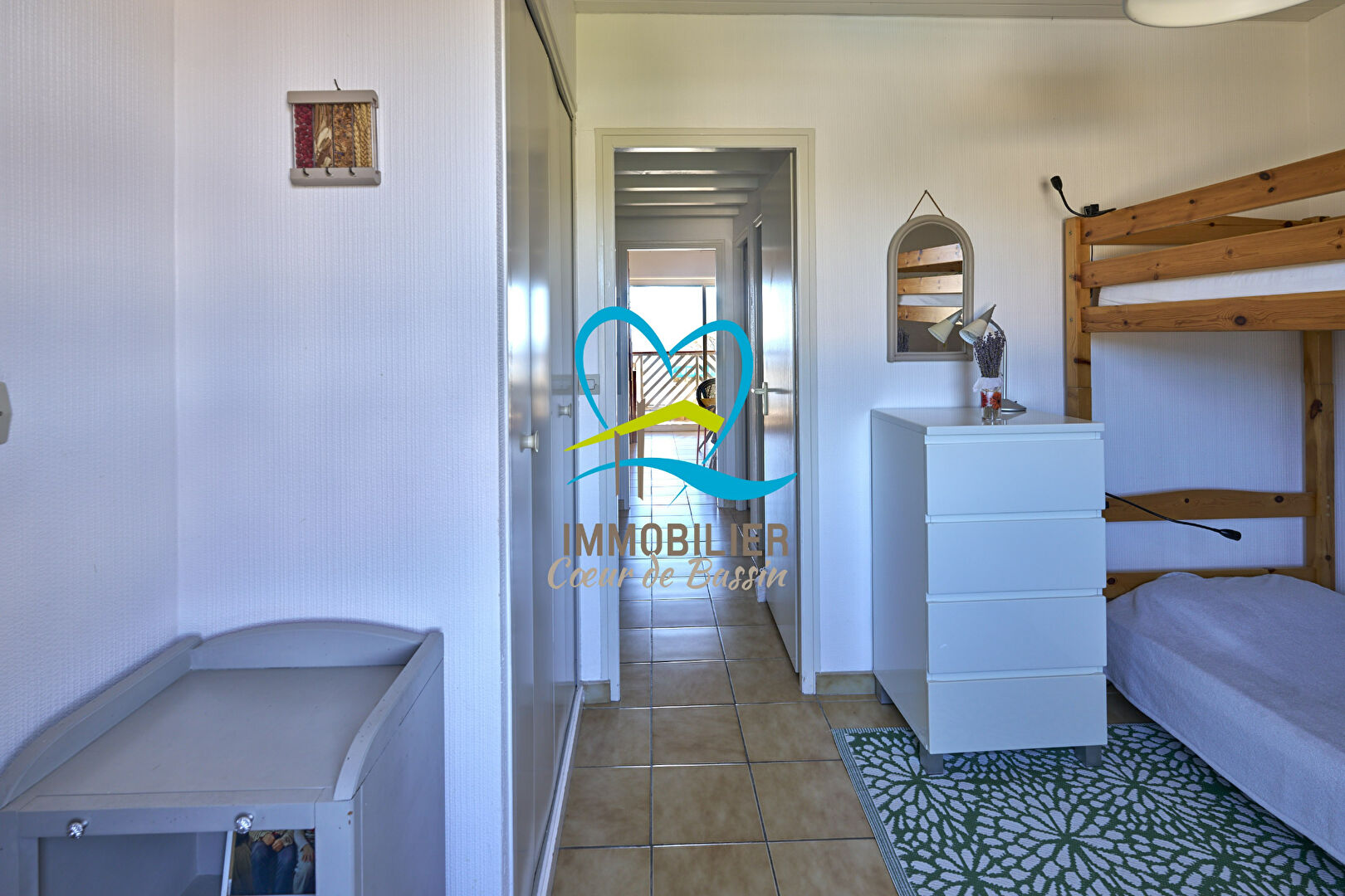 En exclusivité avec Immobilier coeur de Bassin, venez visiter rapidement ce bel appartement T2 Face au Bassin . Il comprend une chambre, un dégagement avec kitchenette, une salle de bains, wc, salon exposé SUD ouvert par une large baie vitrée, face au Bassin avec terrasse carrelée et store banne neuf. A l'étage une mezzanine de 12m2 au sol soit 8m2 habitables servant de seconde chambre avec vélux neuf et combles. La terrasse a une vue exceptionnelle et aucun vis à vis avec les balcons des côtés. Pas de travaux à prévoir, les peintures sont récentes, le volet roulant du salon a 2 ans. Chauffage électrique (radiateurs de type radiants) cumulus de 50L dans les combles. L'appartement est vendu avec son garage fermé. PARTIES COMMUNES : les façades et balcons sont en très bon état, piscine avec local technique, portail électrique, court de tennis dont le revêtement vient d'être refait, terrain de pétanque. Local vélo. Très beau parc arboré, sécurisé, en front de mer. EMPLACEMENT : recherché, non loin du centre, du port du Betey, des commerces du Mauret, au bord de la plage Points forts : vue exceptionnelle, exposition, état général de la résidence, garage, équipements. Pour une visite appelez Chrystel au 06.17.30.39.60, agent commercial inscrit au RSAC de Bordeaux 840 160 451. (3.55 % honoraires TTC à la charge de l'acquéreur.) Copropriété de 126 lots - dont 49 lots habitation. (Pas de procédure en cours). Charges annuelles : 1500 euros. Chrystel DADOLE (EI) Agent Commercial - Numéro RSAC : 840160451 - BORDEAUX.