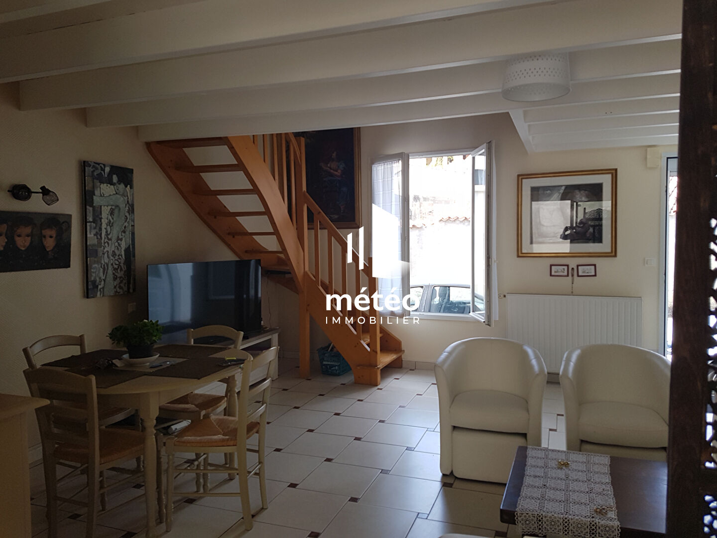 Laissez-vous séduire par cette charmante maison de ville, idéale pour ceux qui recherchent confort et caractère. Elle offre une agréable pièce de vie comprenant un espace salon/séjour et une cuisine aménagée ouverte, donnant sur une cour joliment agencée, agrémentée d'une dépendance d'environ 9 m² à aménager selon vos envies. A l'étage, une mezzanine accueille une chambre avec salle d'eau et WC, ainsi qu'un palier pouvant servir de second espace nuit ou de bureau. Une visite suffira pour en tomber sous le charme. Bien disponible uniquement chez Météo. Ce bien est proposé par votre agence Météo Immobilier des Sables d'Olonne, contactez votre conseiller sans plus attendre au 02.51.21.81.85 à votre écoute pour votre projet d'achat d'une maison en bord de mer en Vendée. Christèle BEAUDOUIN (EI) Agent Commercial - Numéro RSAC : 500902051 - LA ROCHE SUR YON.