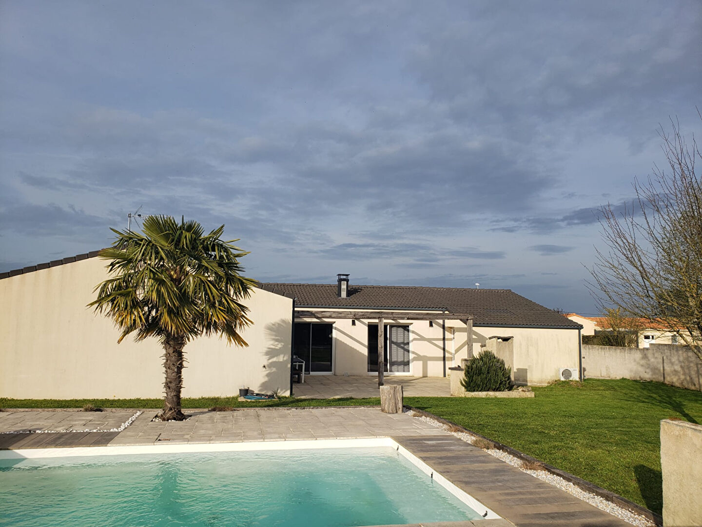 Prahecq - en impasse - Maison de plain pied de 2013 en parfait état. Composée de 4 chambres, vous bénéficierez d'une pièce de vie de plus de 60m² idéalement exposée avec cuisine équipée et aménagée SCHMIDT donnant sur un cellier amenant à un très grand garage. Côté extérieurs, de nombreux stationnements, une terrasse sans vis à vis et une piscine. Le tout sur 1327m² de parcelle clôturée. Chauffage électrique, Taxe foncière 1419 euros. Assainissement collectif. A visiter