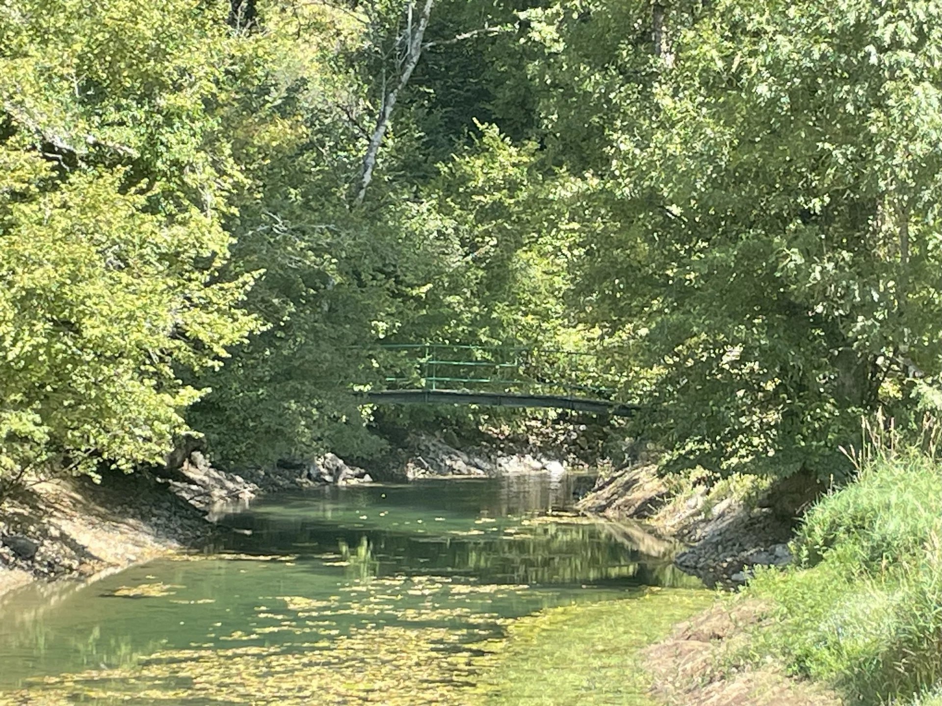 À l’extérieur : terrasse, grande piscine, écrin naturel de plus de 7 hectares avec forêt, rivière et source… le tout dans un calme absolu.