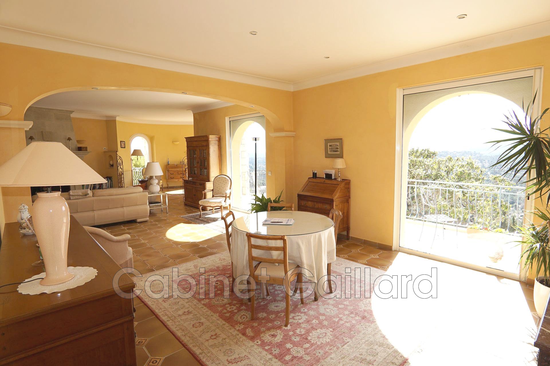 Emplacement rare superbe vue mer et lac à proximité immédiate du village au calme absolu magnifique propriété de caractère présentée en excellent état d'une surface habitable de 290 m2 (carrez) et 320 m² au sol se composant d'une double réception de 62 m² avec cheminée, ouvrant sur une large terrasse plein sud, 5 chambres, 2 salles de bains avec douches et une salle de fitness. En extérieur très belle piscine 14.5x5m carrelée avec pool house. Jardin remarquable de 3 437 m² parfaitement entretenu et complanté d'essences méditerranéennes (oliveraie).