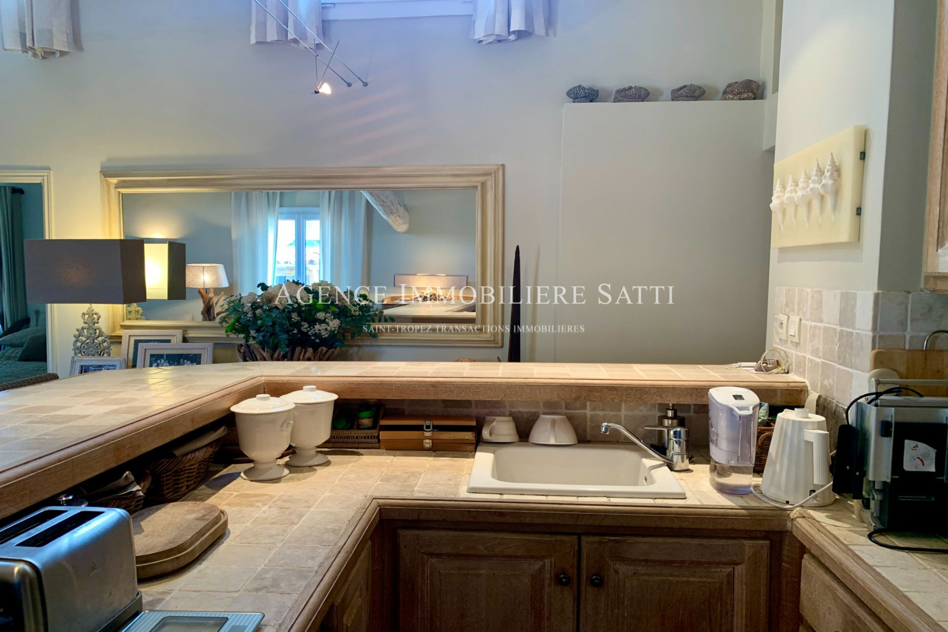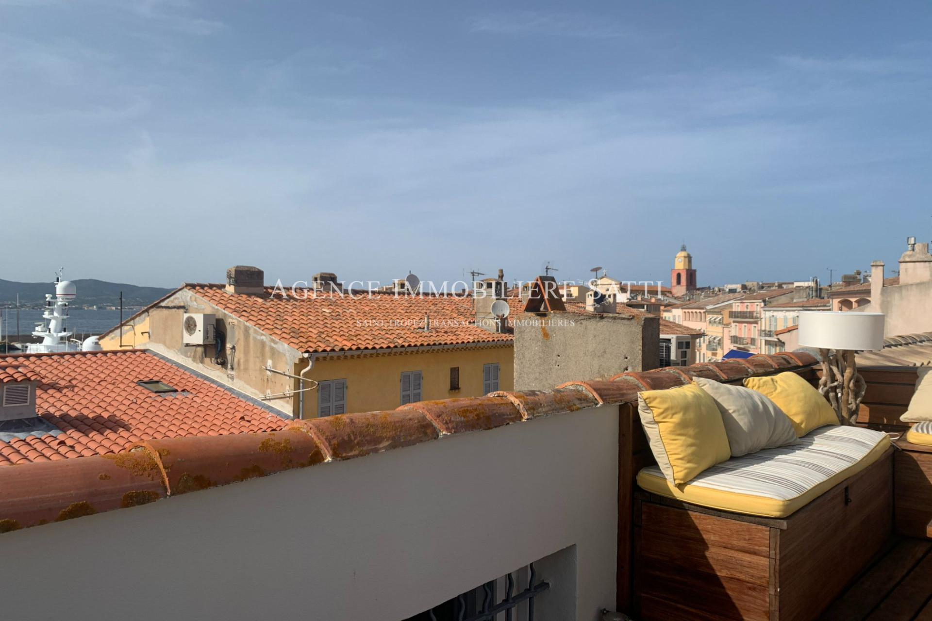 Une très belle terrasse sur le toit avec vue panoramique pour cet appartement tropézien situé à deux pas du port, au deuxième et dernier étage sans ascenseur d'une maison de village. L'appartement se compose d'un hall d'entrée, d'un salon/salle à manger avec coin cuisine équipée et de deux chambres, chacune avec sa salle de douche.
