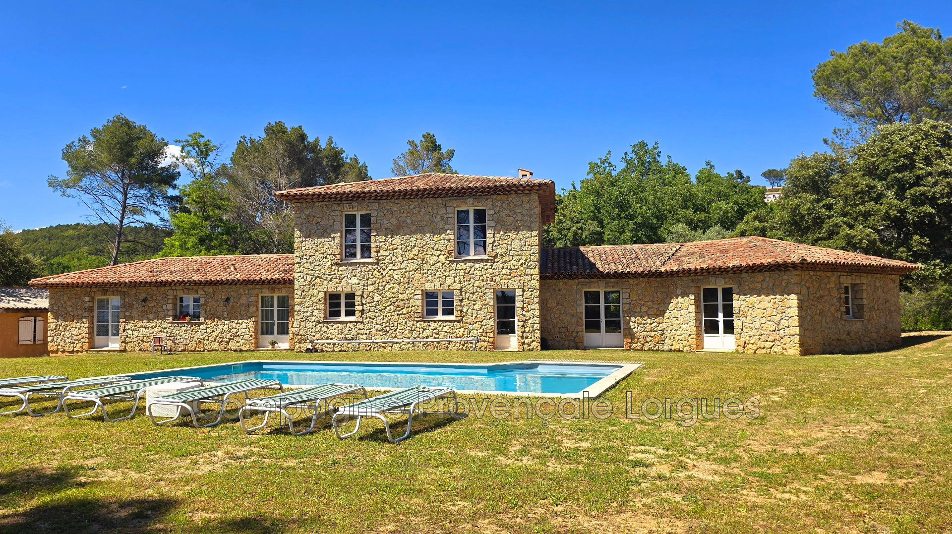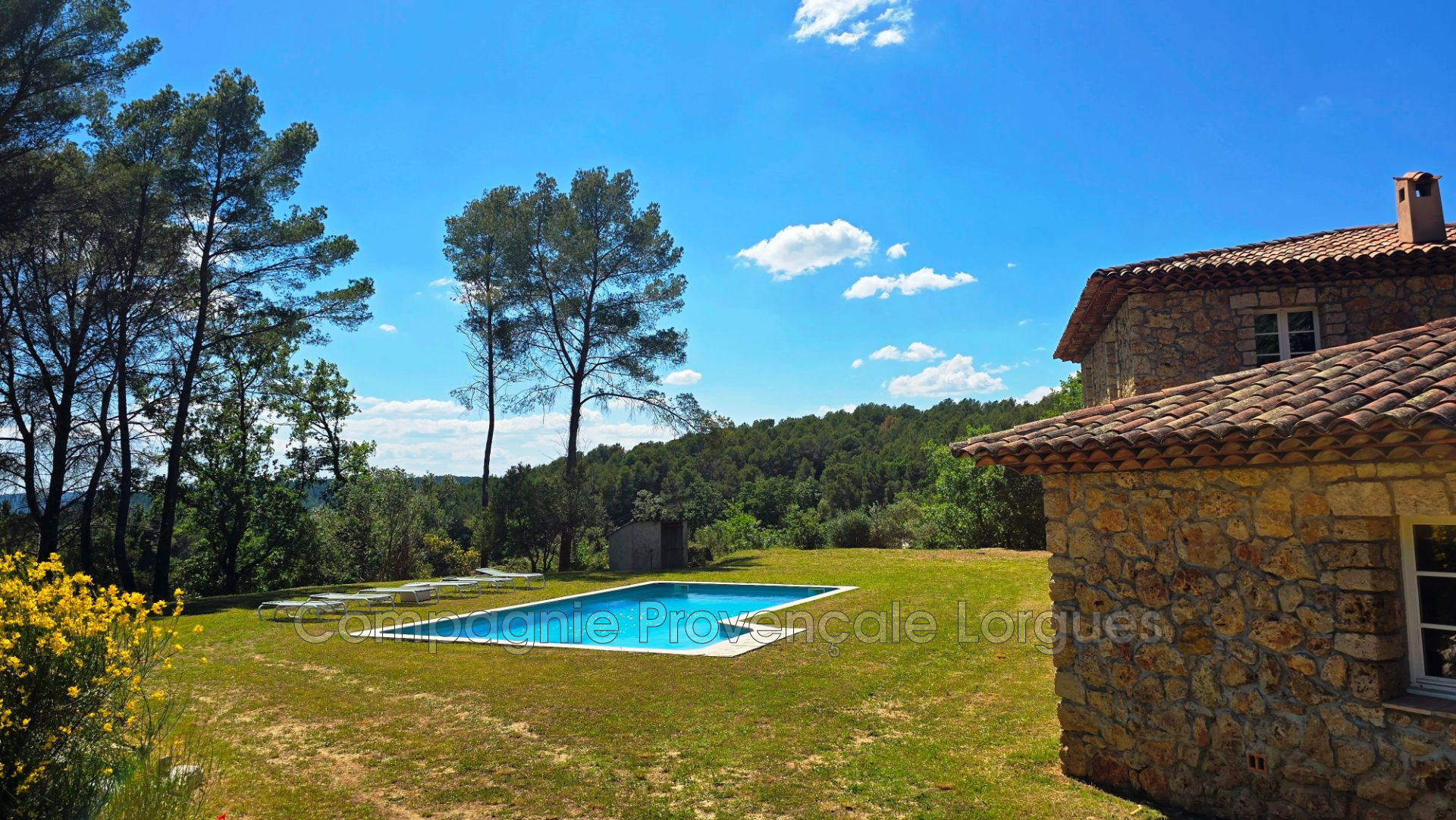 La propriété comporte deux lots et un permis valide, le lot A de 4870m², comprend une grande villa en pierres apparentes d'environ 300m², une piscine de 10m * 5m au Magnésium, un garage de 60 m² et un abri voiture. La maison est aujourd'hui séparée en deux parties, un appartement indépendant profitant d'une chambre avec salle de douche, Wc, salon / salle à manger et cuisine équipée. Puis la partie principale, sera vendue à finir, tout sera fait à l'exception du choix et de la pose des matériaux de finitions (peinture, carrelage, montage de la cuisine et des salles de douches). Sur ce lot le permis valide en cours prévoit un pool-house (non bâtit aujourd'hui).