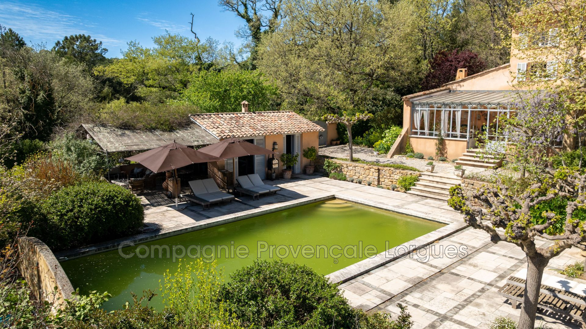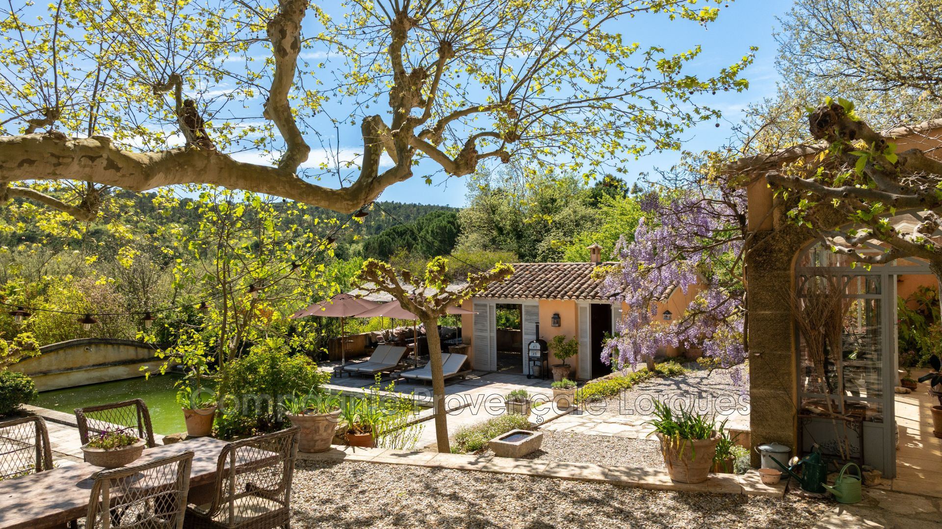Sur un terrain très bien arboré et végétalisé de plus d'1Ha se niche cette ancienne construction qui n'a rien perdu de sa superbe. Entre rivière, vignes et forêt de chênes, la propriété profite d'une construction principale de 500m² habitable, d'un coin piscine / pool house bien exposé, d'une oliveraie, d'un bassin et d'un grand potager.