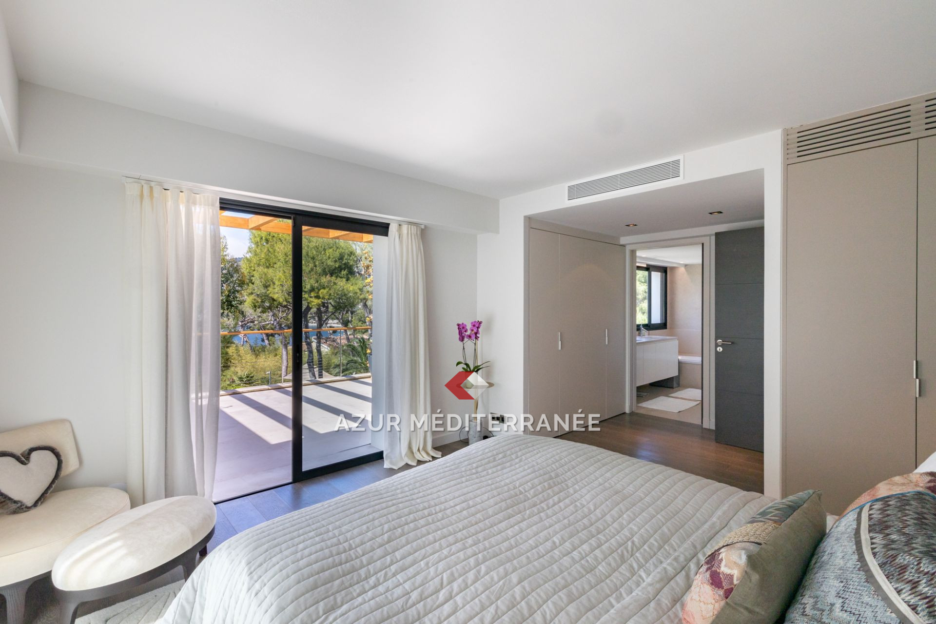 A l'étage, la villa offre trois belles chambres en suite avec terrasse et balcon.