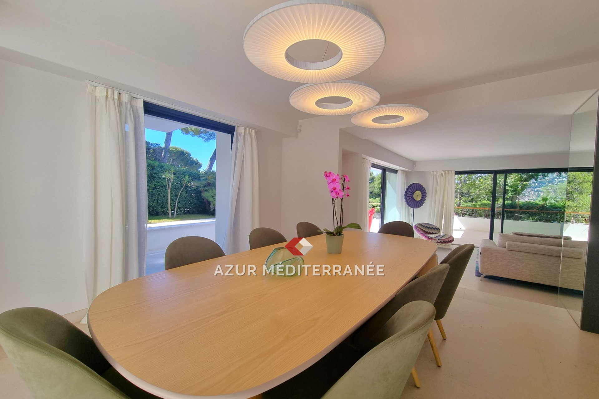 La villa est répartie sur 3 niveaux, plus une jolie terrasse sur le toit. Le rez-de-chaussée comprend un grand salon, des terrasses, un jardin plat et un espace légèrement surélevé avec cuisine américaine et salle à manger, le tout ouvrant sur la grande piscine.
