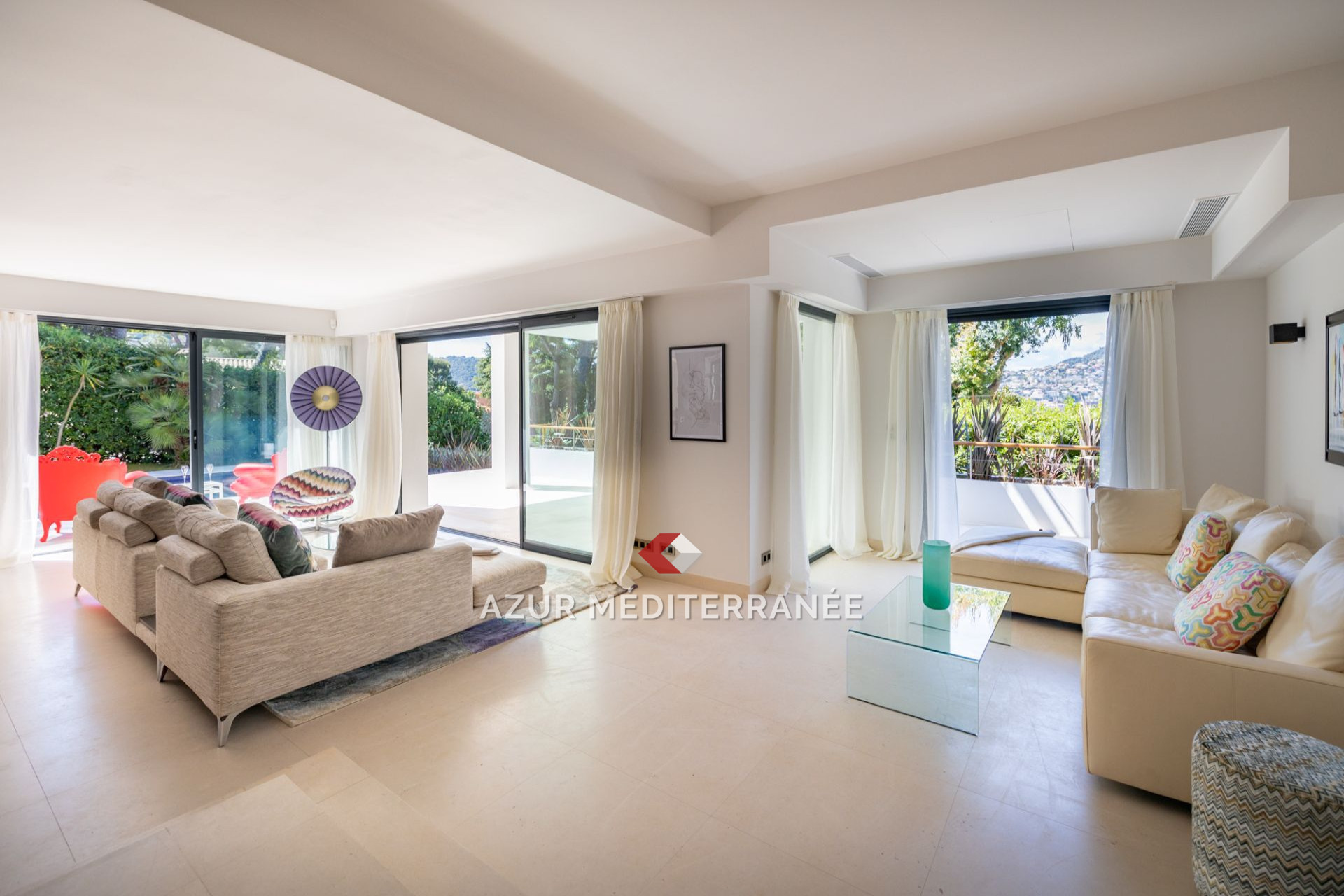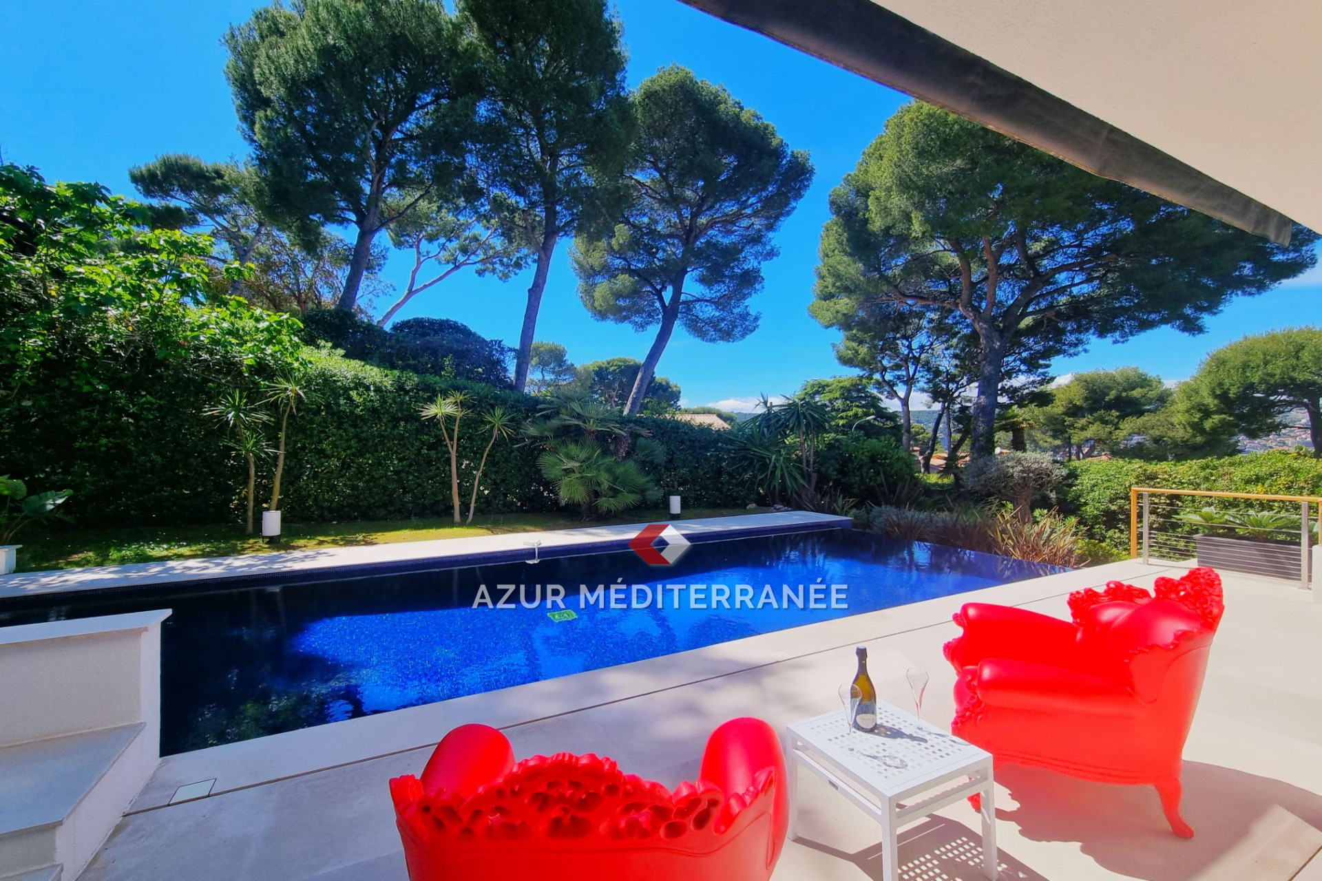Venez découvrir cette villa moderne de construction récente et bien conçue, avec sa tour arrondie et sa vue mer dans un quartier calme et luxueux au coeur du Cap Ferrat.