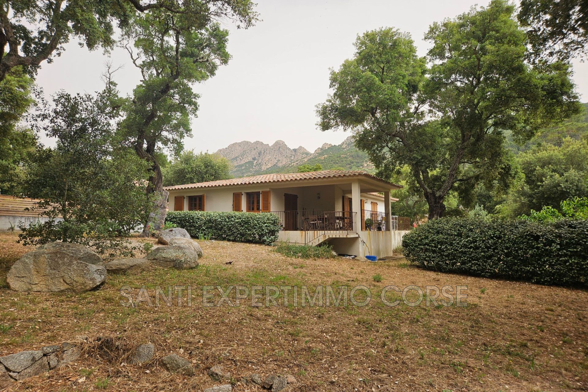 Santi Expertimmo Corse vous présente au calme absolu, dans le village de Conca, avec vue sur le maquis, cette charmante maison familiale de type 4 d'une surface de 96m² ; beau garage et cave en sous-sol, piscine privée de 8m/4.50m, le tout sur un terrain de 3227m², dans un véritable écrin de verdure.