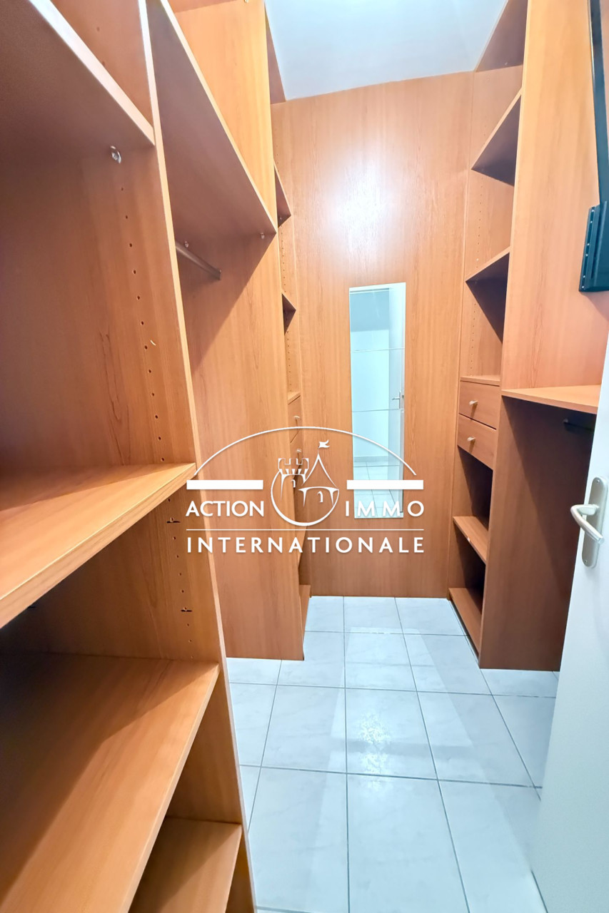 Agence Action Immo Internationale vous propose proche du centre-ville dans une résidence sécurisé et arboré cet appartement de 77 m² en rez-de-jardin comprenant un hall d'entrée, une cuisine équipée, cellier, une pièce de vie, deux chambres, salle de bains avec douche et baignoire, un dressing.