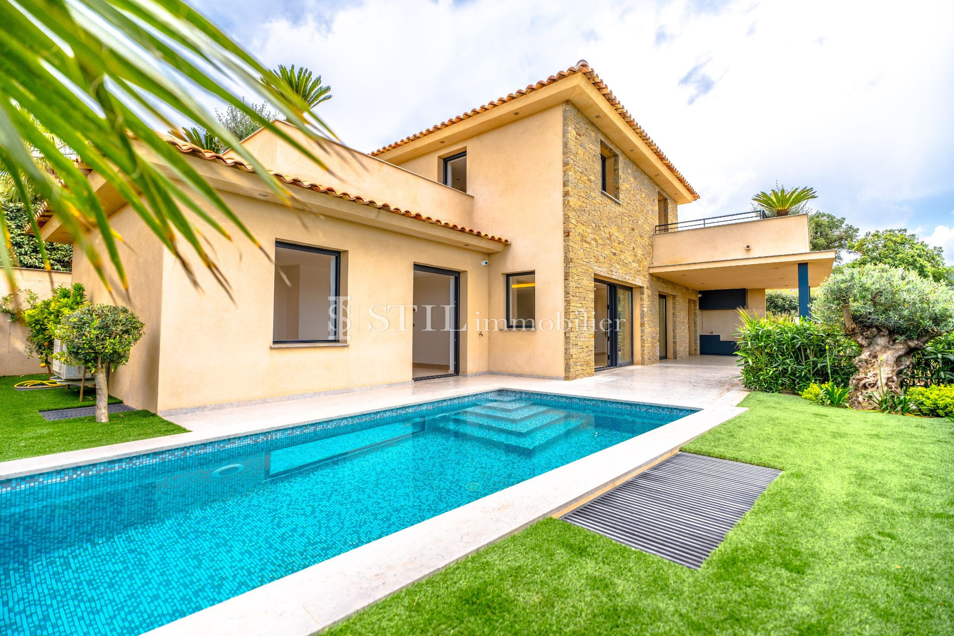 Vente villa Sainte-Maxime. Villa neuve construite avec des matériaux de qualité et hauts de gamme, avec une belle vue dégagée sur les collines et aperçue mer. Située dans un quartier calme à proximité des commodités, elle se compose : hall d'entrée, vestiaire et wc invités, vaste séjour ouvrant sur terrasse et patio avec fontaine, cuisine us équipée, 4 chambres avec chacune salle d'eau et dressing. Hammam, cave à vins et un grand garage complètent les atouts de cette villa. Une piscine agrémente le jardin joliment arboré. Frais notaire réduit.