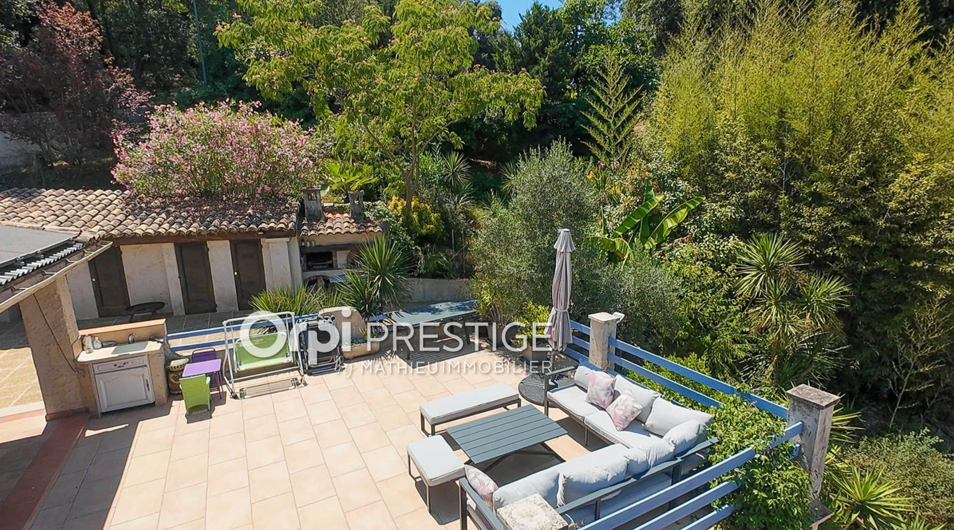 EXCLUSIVITE BIOT COLLINES- Magnifique villa de 151 m² mitoyenne d'un côté seulement au calme, située dans le quartier recherché de Biot, à proximité de Sophia Antipolis. Sur un terrain de 7380 m²,cette maison de plain-pied est orientée plein Sud avec une belle vue sur la campagne environnante.
