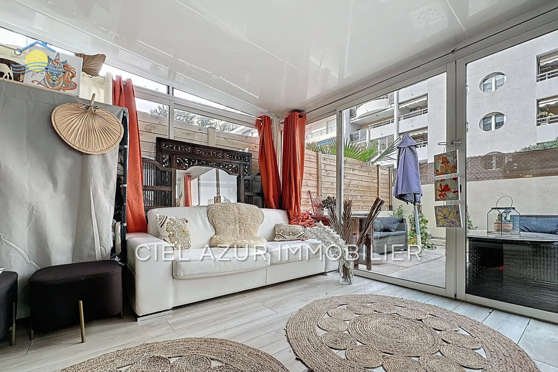 Recherchez-vous un endroit où résider ou investir à Juan-les-Pins ? Un magnifique studio de 40m² (26m² loi Carrez + 14.50m² de véranda) au rez-de-chaussée d'un immeuble résidentiel se trouve dans le paisible quartier Square du Lys. Le bâtiment de 2005 est en bon état et dispose d'un ascenseur. Le studio possède une vaste terrasse de 45m², une véranda de 14m² ce qui vous donne un espace de vie supplémentaire non négligeable, une cuisine américaine équipée et offre une vue citadine. Des commodités telles que chauffage collectif par climatisation, eau chaude individuelle électrique, double vitrage, résidence sécurisée, calme résidentiel, stores et volets roulants électriques. Une salle de bain avec toilettes sont également présents. Venez voir par vous-même ce petit joyau en parfait état et décoré avec goût. Possibilité d'acquérir un parking en sous-sol en supplément.