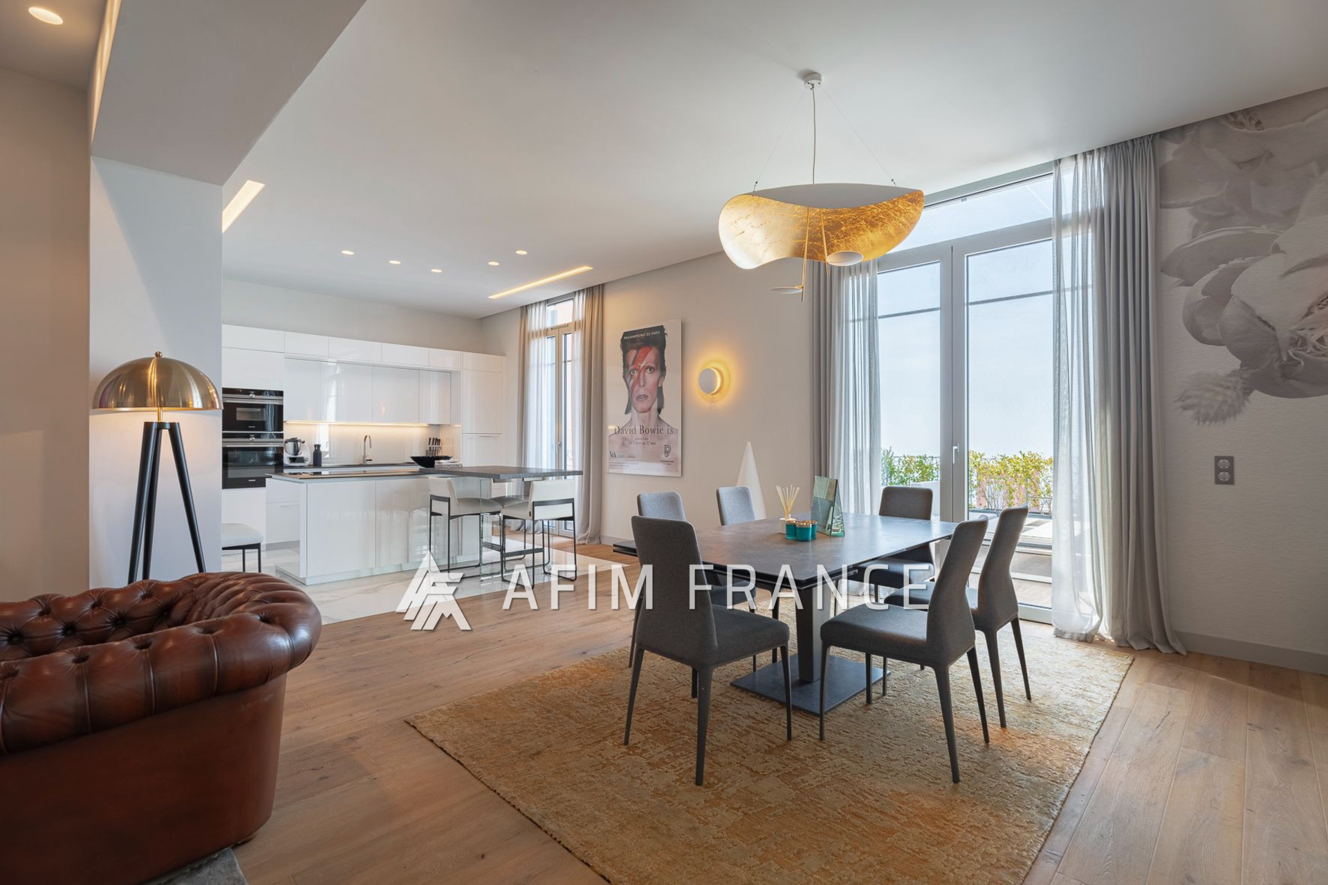 Au niveau R+2, un majestueux séjour élégant, avec sa cuisine américaine aménagée s'ouvre sur une vaste terrasse d'où vous profitez d'une belle vue sur la mer et sur la péninsule de Saint Jean Cap Ferrat.