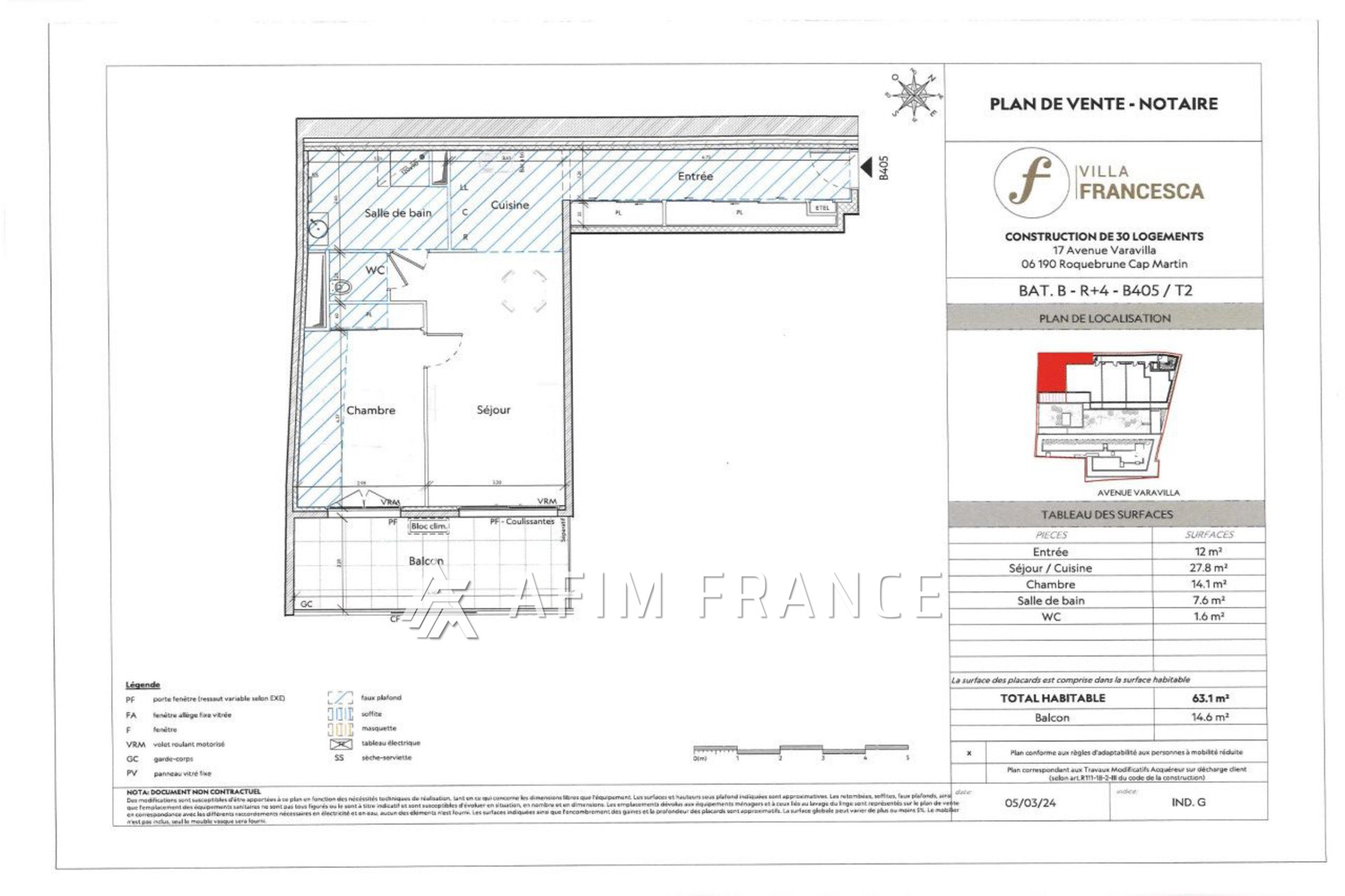 Sublime appartement neuf, de type 2 pièces situé au 4ème étage dans un quartier prisé a l'entrée de Monaco : Saint Roman à Roquebrune-Cap-Martin. Inédit et neuf, d'une surface généreuse de 63 m² doté d'une terrasse de 14 m² et d'un séjour lumineux de 28 m². L'appartement bénéficie d'une exposition Sud avec une impressionnante vue mer panoramique. La cuisine est indépendante, la pièce a été conçue pour offrir confort et modernité. L'immeuble sera livré 4eme trimestre 2025, respire le luxe et la sécurité. Le calme maîtrisé de la résidence, l'ascenseur, les stores électriques, la résidence sécurisée et le double vitrage font partie des prestations de qualité présentes pour votre bien-être. L'appartement comporte une chambre confortable, une salle de bain ergonomique et une terrasse.