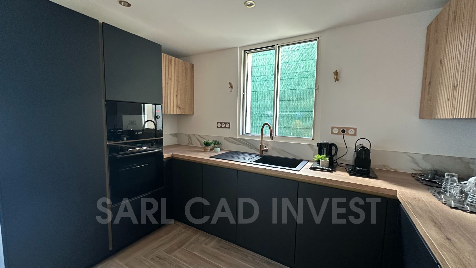 Entrée, salon-séjour accès grande terrasse sans vis-à-vis, très belle cuisine ouverte équipée et aménagée, wc avec lave mains.