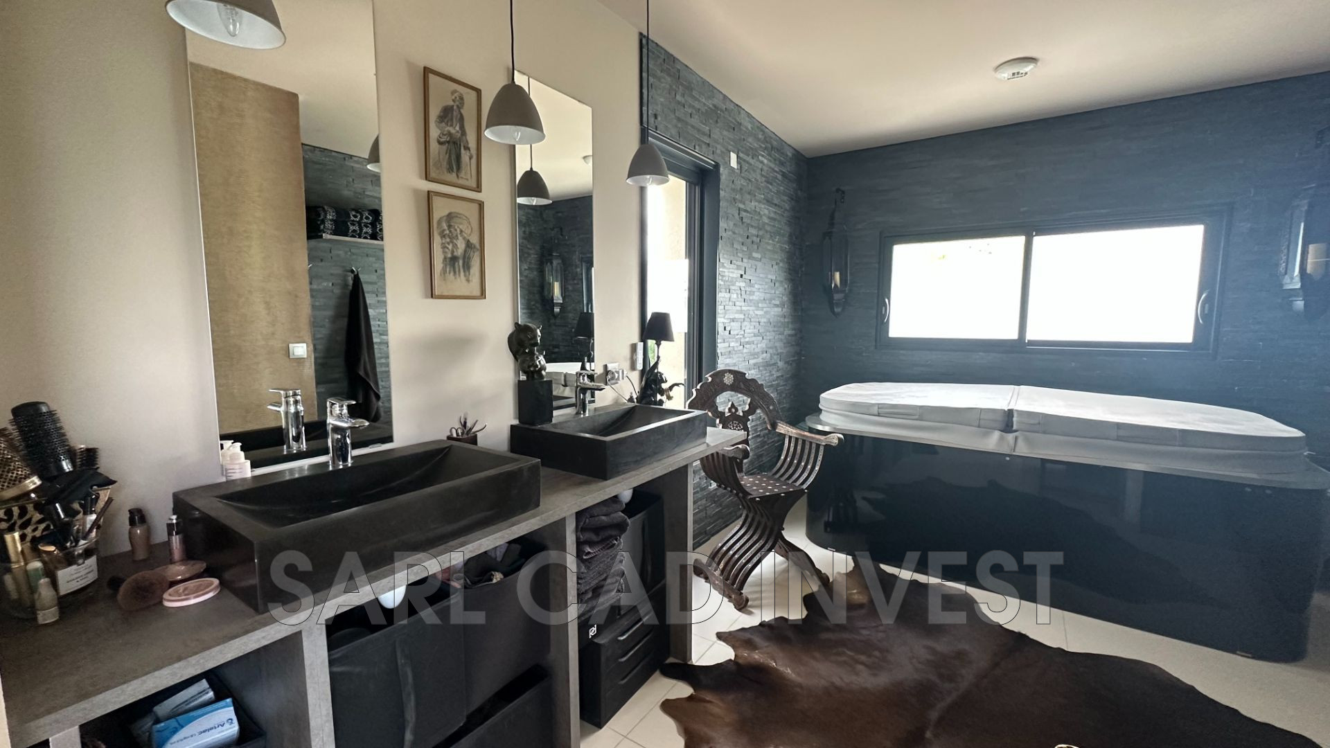 Prestations de haut de gamme, hauteur sous plafond 3m, chauffage au sol (pompe à chaleur), domotique, arrosage automatique.
