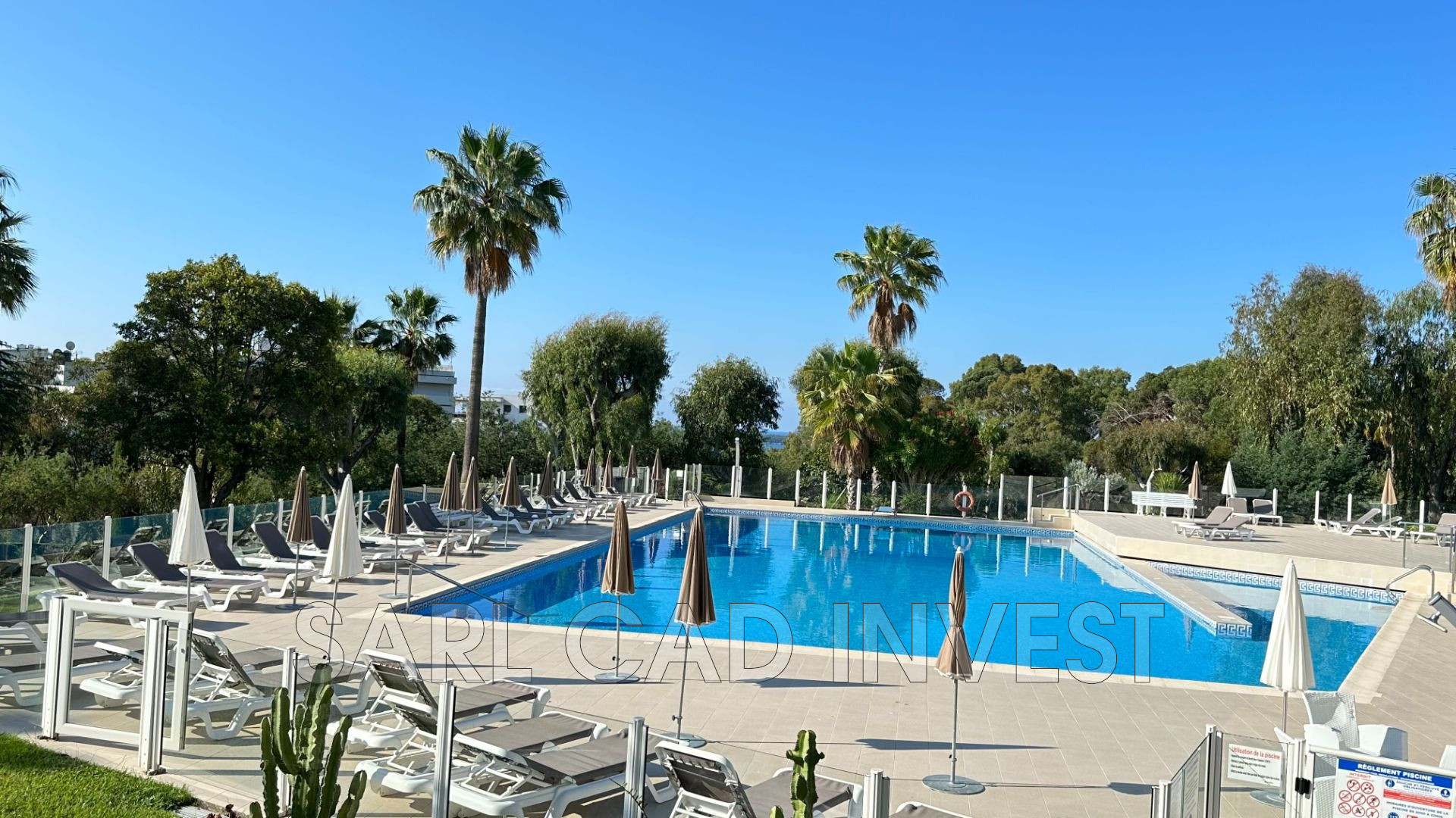 Très belle résidence de luxe, sécurisée avec gardien, parc de 3 ha, piscine neuve à débordement semi-olympique avec transats et parasols, cours de tennis,