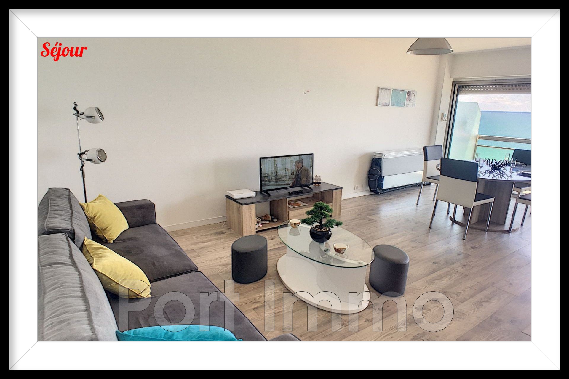 Cagnes sur Mer sur la Promenade de la Plage, vue mer panoramique, deux pièces, une chambre, séjour avec canapé lit convertible, cuisine américaine équipée, salle de bain neuve, wc séparé, terrasse et garage en sous sol