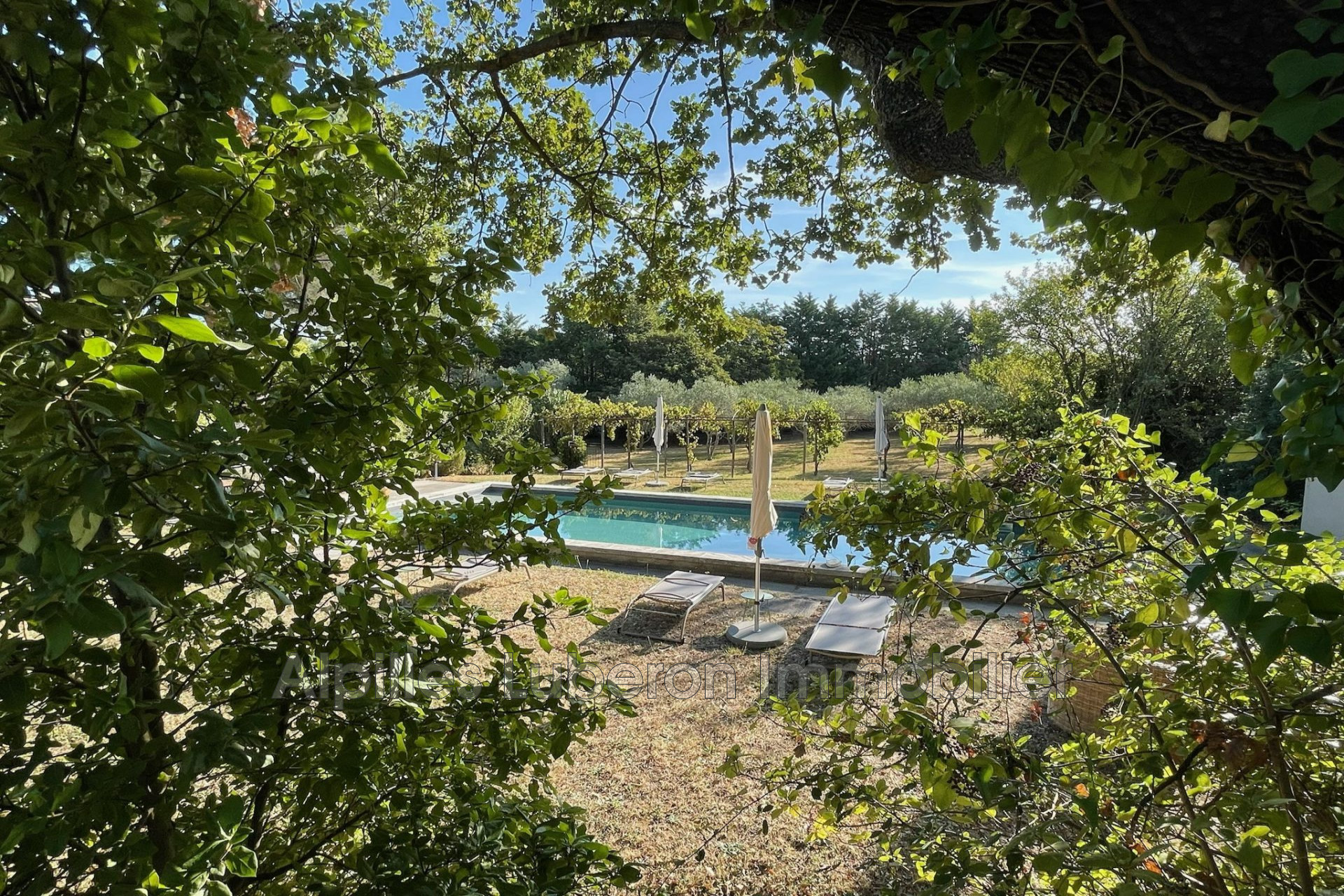 À différents endroits du terrain de 3 700 m² à la végétation méditerranéenne, des sièges et tables. Autour de la piscine de 5 x 13 m sécurisée par 2 alarmes immergées, des chaises longues et des parasols. Un portillon permet d'accéder au canal des Alpines le long duquel musarder ou vous rendre à pied jusqu'au coeur du village.