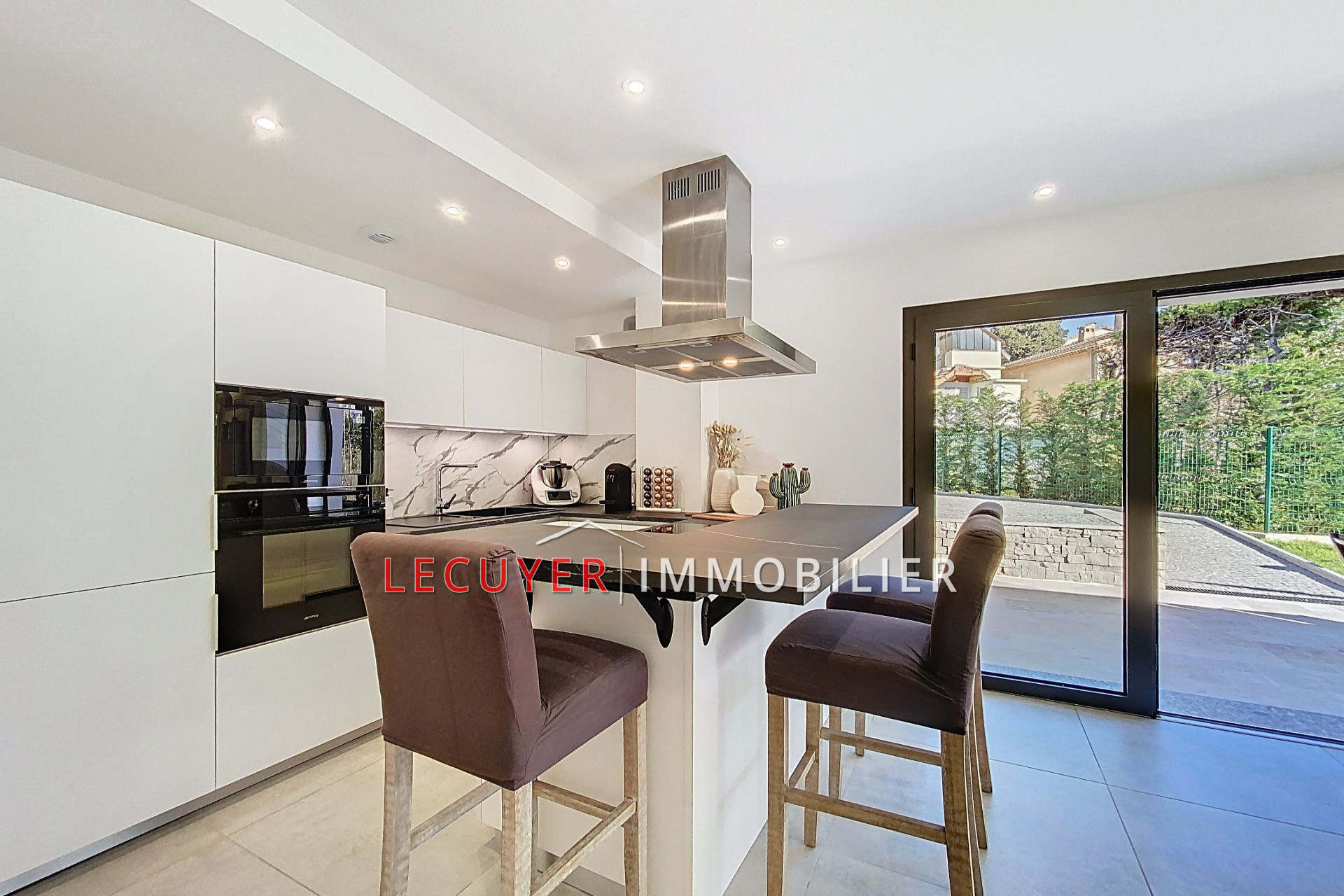 D'une surface habitable de 103 m² sur un terrain de 294 m², elle se compose au rez-de-jardin d'un vaste séjour avec salle à manger, d'une cuisine ouverte moderne, d'un bureau, d'une buanderie et de WC indépendants.