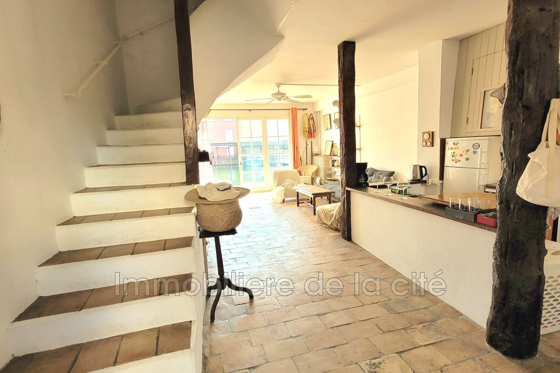 Au coeur de la partie ancienne et proche de toute commodité, cette jolie Maison de pêcheur élargie, (90 m2 Loi Carrez) avec amarrage et ponton de 11 x 4 m, propose avec son sol en terre-cuite d'origine et ses grands volumes, 5 pièces, un grand patio fleuri coté rue et un quai-terrasse coté canal.
