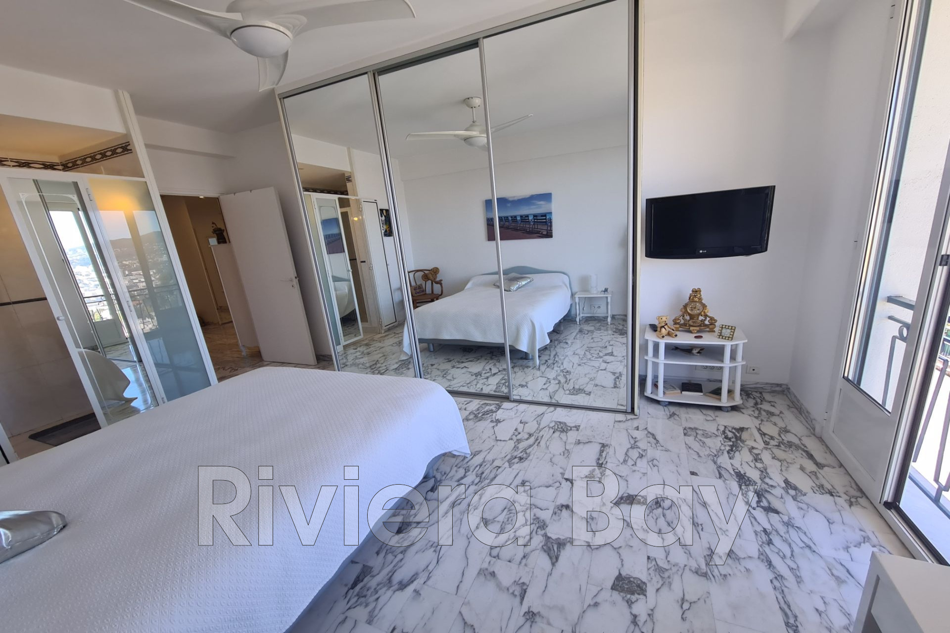 Grand 3 pièces de 93m², meublé, avec une belle entrée en étoile, rangements coulissants avec miroir, salon lumineux avec vue mer, cuisine indépendante équipée avec l'accès à la terrasse/jardin,
