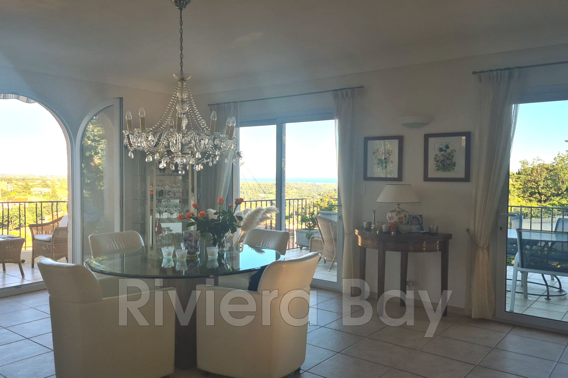 Belle villa individuelle, au calme, en parfait état et très bien entretenue, située au coeur du quartier Vence L'Ara, terrain de 875m² exposé plein sud, avec une vue dominante imprenable sur la mer.