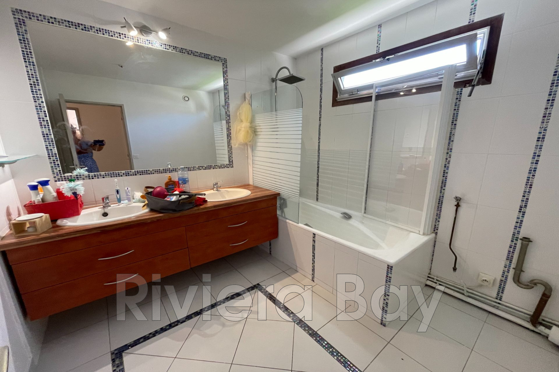 3 chambres dont une avec salle d'eau en suite refaite a neuf, salle de bains moderne meuble double vasque, baignoire et toilettes,