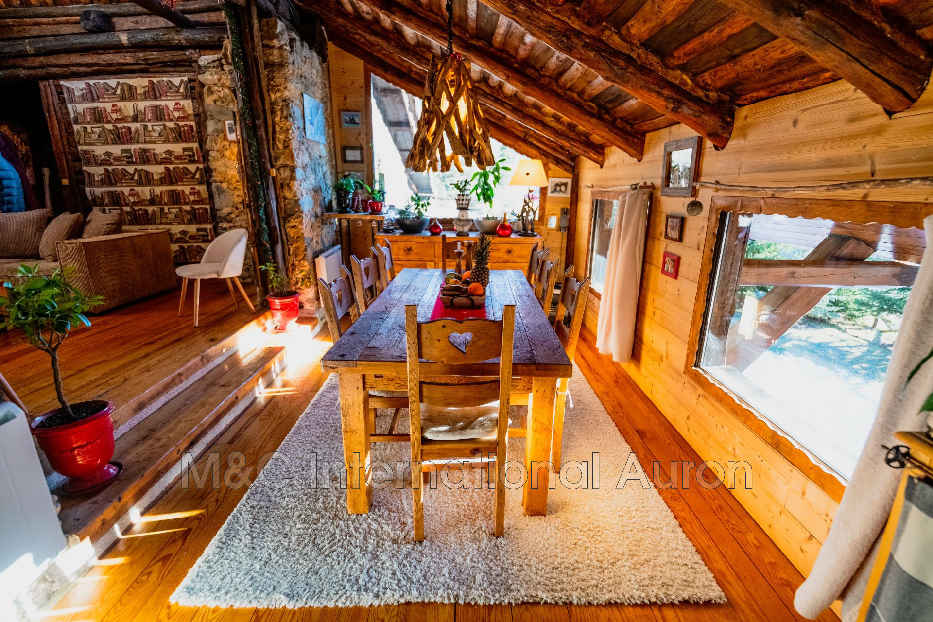 L'intérieur, véritable cocon alpin, séduit par ses volumes uniques et sa cheminée majestueuse en pierre, au coeur d'un séjour aux poutres apparentes et de très grandes hauteurs sous plafond. Le bien se compose d'une suite parentale, de deux chambres supplémentaires, de trois salles d'eau, de deux coins nuit d'appoint, d'une véranda lumineuse avec sauna.