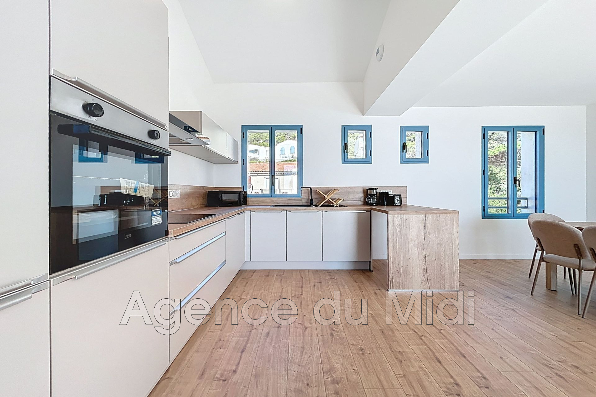 Entièrement rénové et climatisé, ce T4 d'environ 75 m² habitables est accessible par un escalier extérieur privatif menant à une spacieuse terrasse couverte ouverte sur la mer.