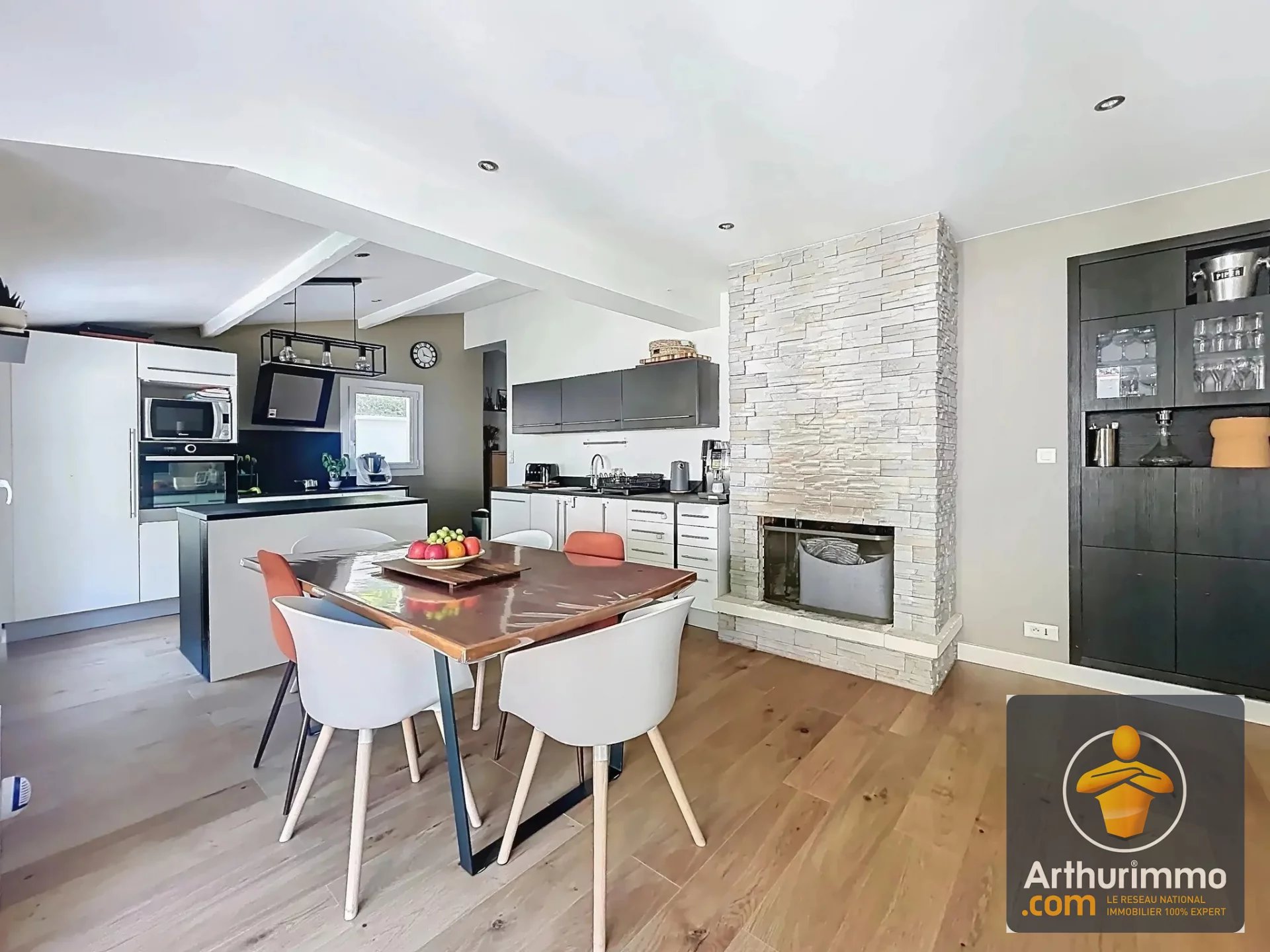 Mesdames et Messieurs, ouvrez grand les yeux, car ce pavillon mérite toute votre attention. Votre agence Arthurimmo a le plaisir de vous présenter, en exclusivité cette charmante maison de 137m2 au sol à la décoration moderne et aux finitions soignées. Installez vous confortablement et projetez vous. Dès l’entrée, un vrai sas de décompression avec rangements intégrés, on pose les clés, les sacs, et on souffle. Puis vient le double séjour de 46 m², baigné de lumière grâce aux grandes baies vitrées, cheminée centrale et accès direct au jardin. Côté cuisine, tout y est, entièrement équipée et aménagée, contemporaine, fonctionnelle, avec un îlot central idéal pour cuisiner et partager. Ici, on allie style, confort et convivialité. Toujours de plain pied, un bureau parfait pour le télétravail, une buanderie pratique et discrète, une salle d’eau avec WC et une salle de bain avec WC, fini les embouteillages matinaux. Deux chambres confortables, entourées de nombreux espaces de rangement intelligemment intégrés. A l'étage un palier distribue deux spacieuses chambres. Coté extérieur, un jardin de 529 m², sans vis-à-vis, avec une belle terrasse ensoleillée prête à accueillir vos barbecues.(Oui, on espère l’invitation) Au fond du jardin, une dépendance actuellement utilisée comme atelier pourrait facilement devenir un studio indépendant, un espace de travail ou une annexe pour recevoir. À l’avant, stationnement pour jusqu’à 4 véhicules, avec en bonus une borne de recharge pour voiture électrique car ici, on pense aussi à demain. C’est maintenant, c’est ici, c’est chez vous.