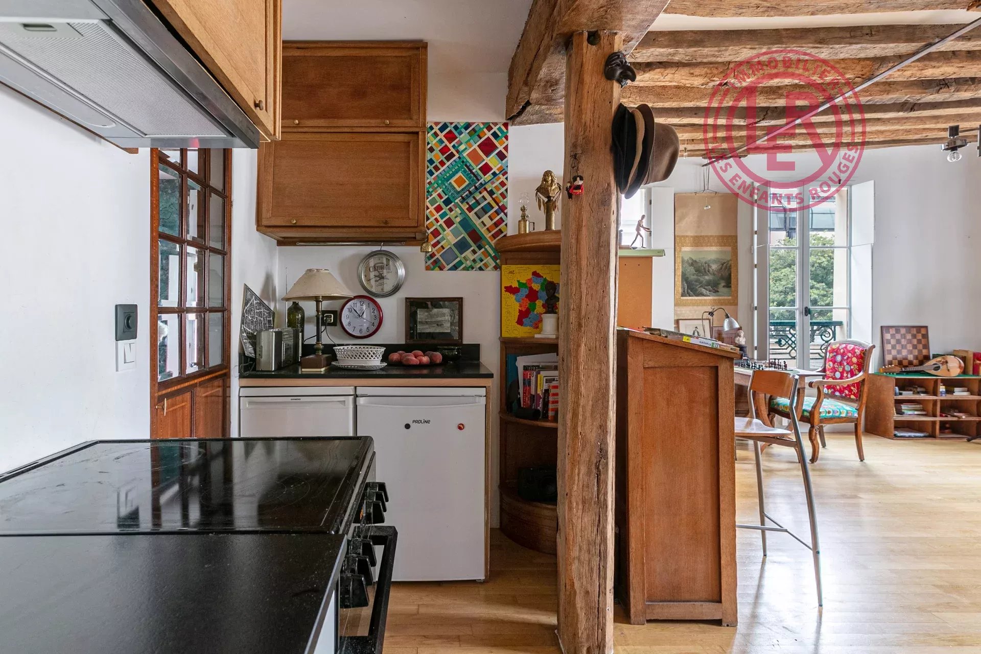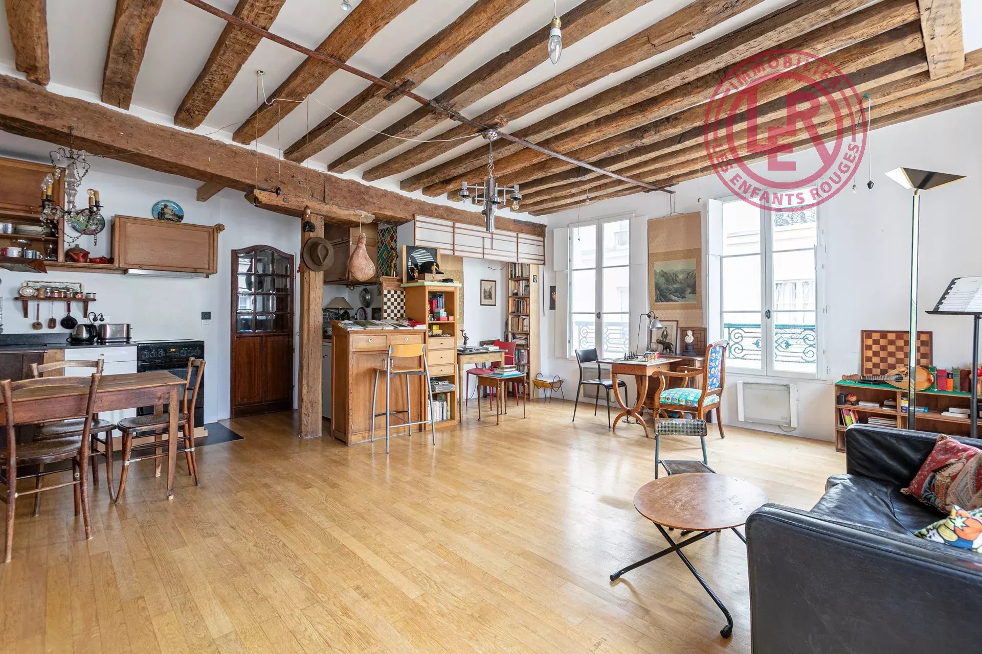 Situé au 1er étage d’un lieu chargé d’histoire ce 4 pièces de 55 m² incarne parfaitement l’esprit du Marais. L’appartement se compose de une entrée desservant un vaste séjour traversant de 35 m², plein sud-ouest, une cuisine ouverte intégrée à l’espace de vie, deux chambres au calme, une salle de bains avec WC, De magnifiques éléments anciens : poutres apparentes, murs en pierres, hauteur sous plafond de 2,77 m Une luminosité remarquable avec vues dégagées, sans vis-à-vis Un cagibi faisant office de cave complète ce bien. Des travaux de rafraîchissement sont à prévoir pour en faire un véritable bijou. Situation exceptionnelle, au cœur du quartier historique des Archives. Un lieu rare, authentique, alliant histoire, cachet et potentiel. Les informations sur les risques auxquels ce bien est exposé sont disponibles sur le site Géorisques : www.georisques.gouv.fr