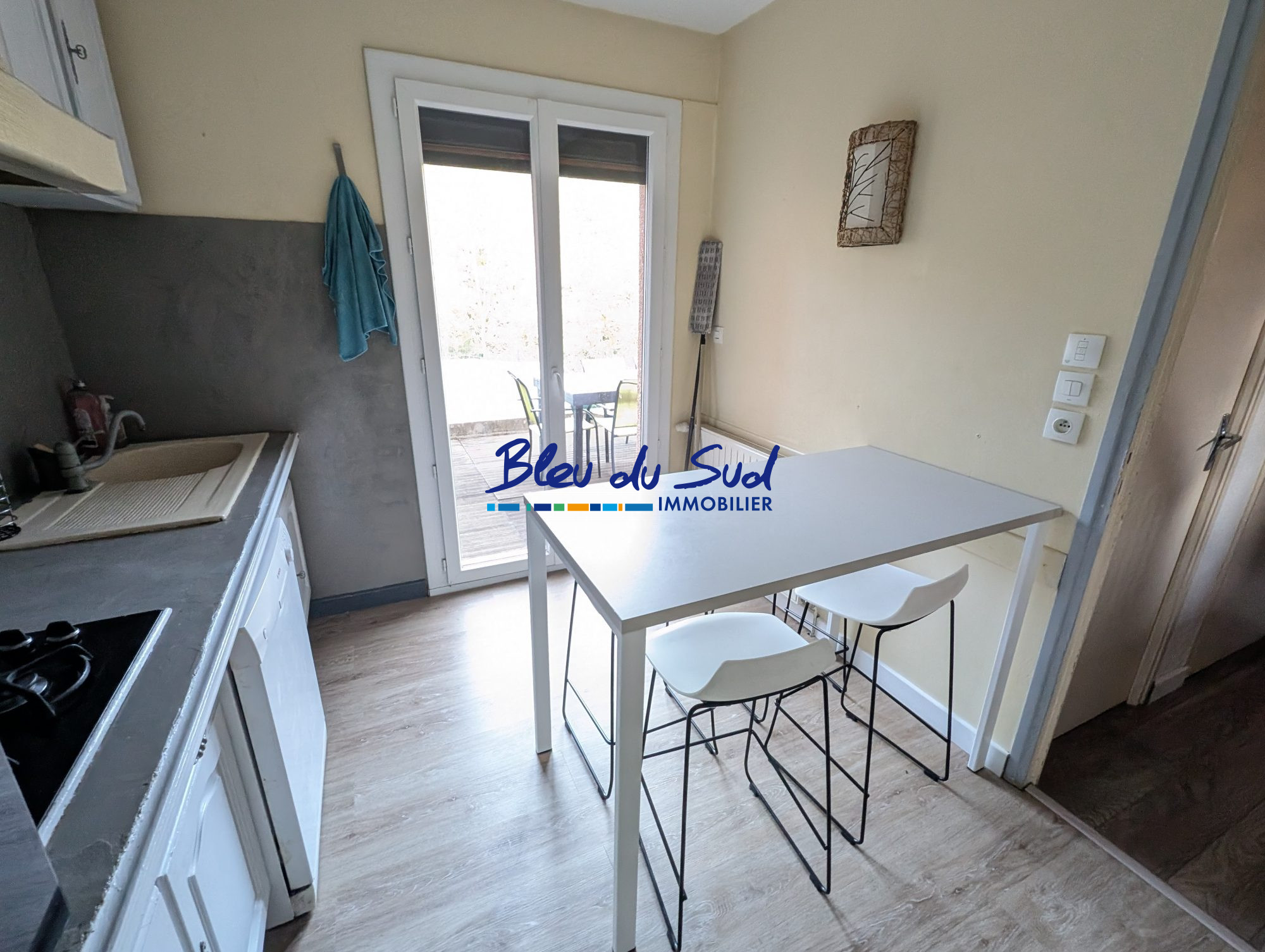 Aux étages d'une cuisine aménagée et équipée indépendante avec accès direct à la terrasse et au jardin, d'un séjour de 23 m² très lumineux grâce à ses ouvertures en PVC avec double vitrage, d'un WC avec lavabo, d'une 2ème chambre avec placard, de deux petites chambres et d'une salle d'eau avec WC.
