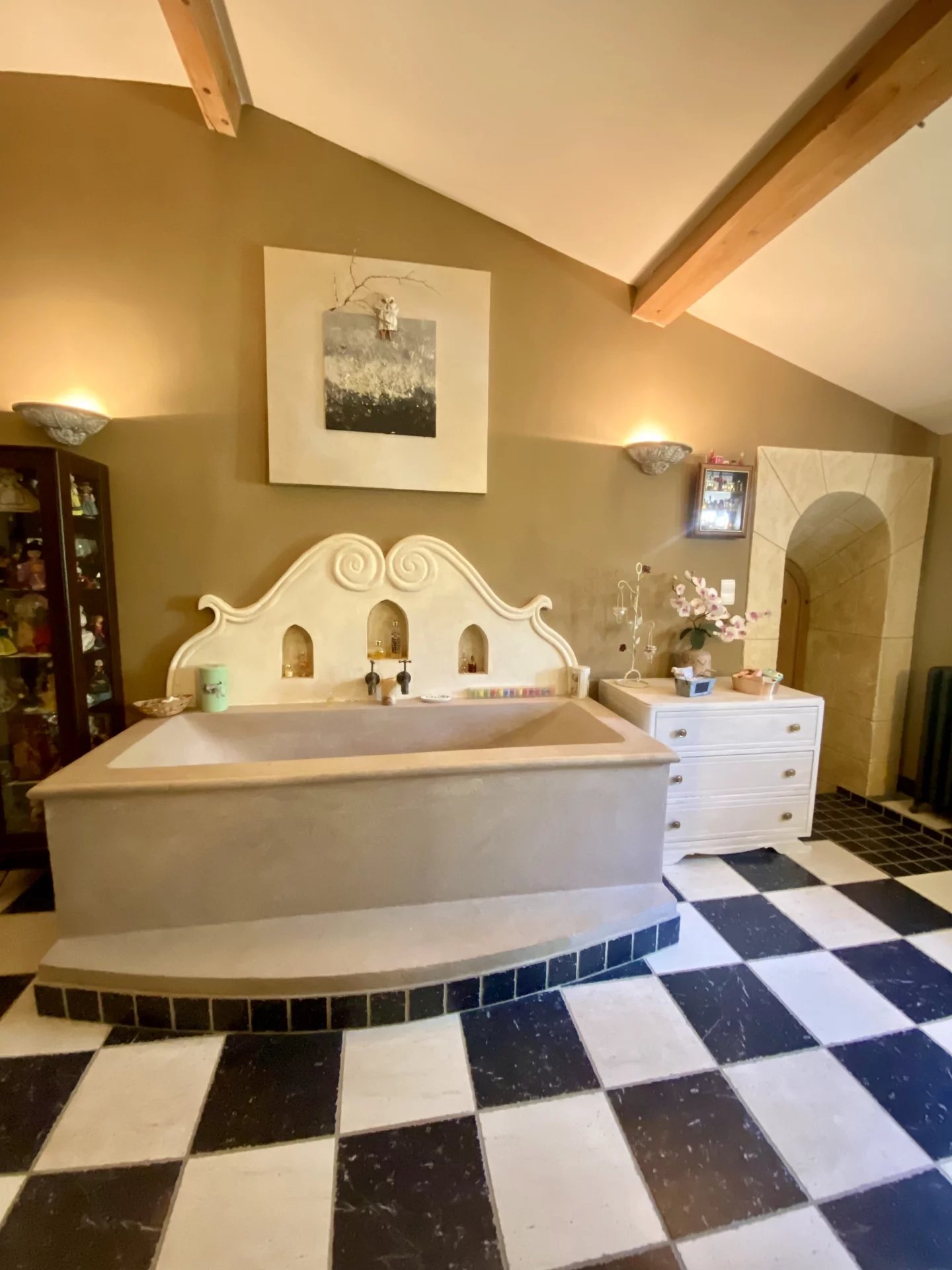 L'étage distribue une magnifique suite parentale (avec dressing, salle de bains et wc) donnant accès à un solarium.